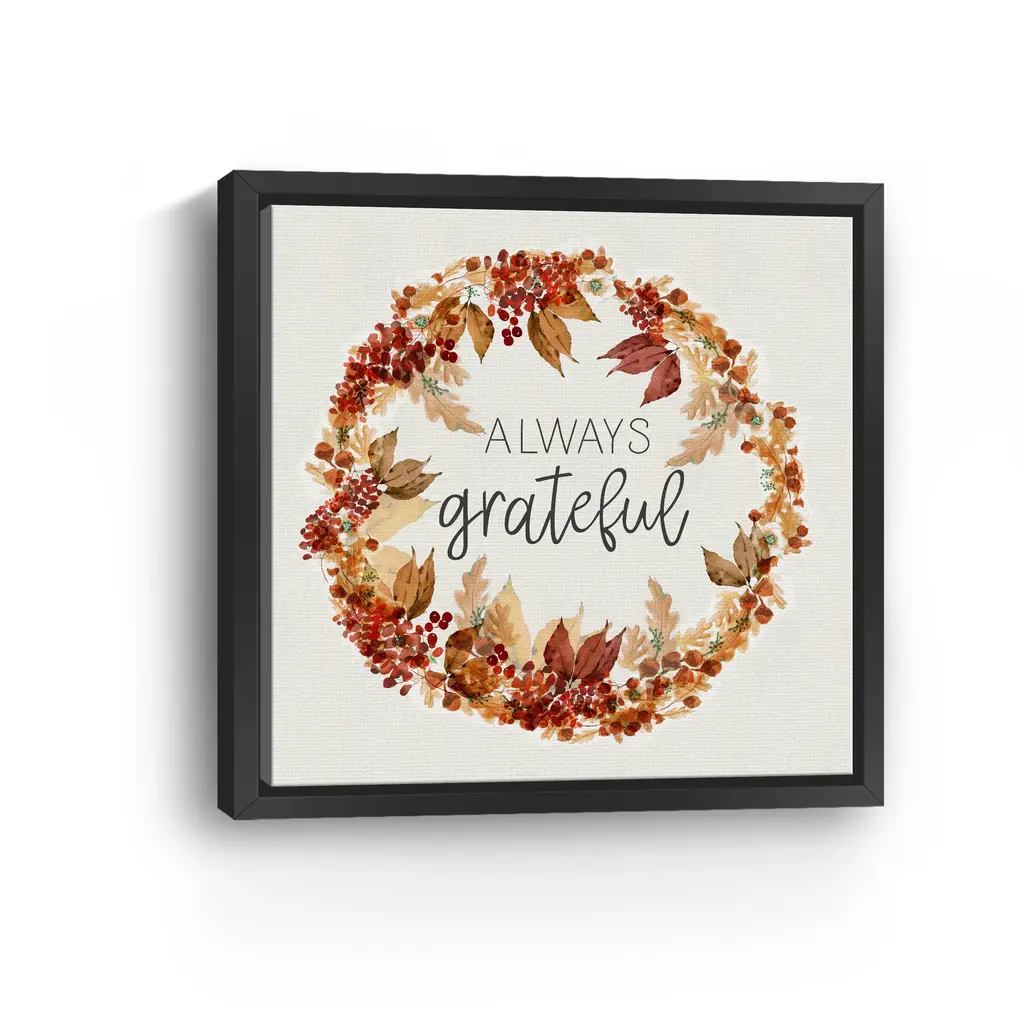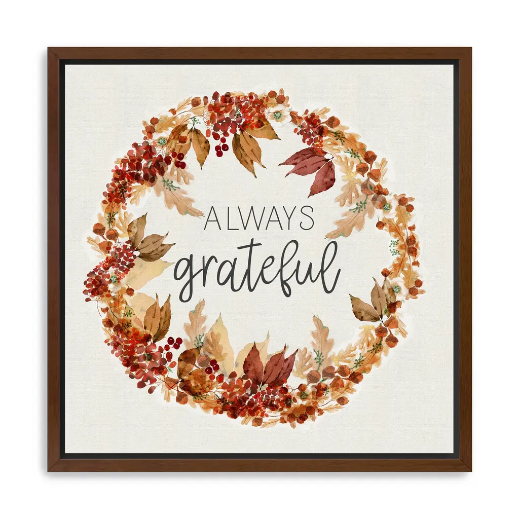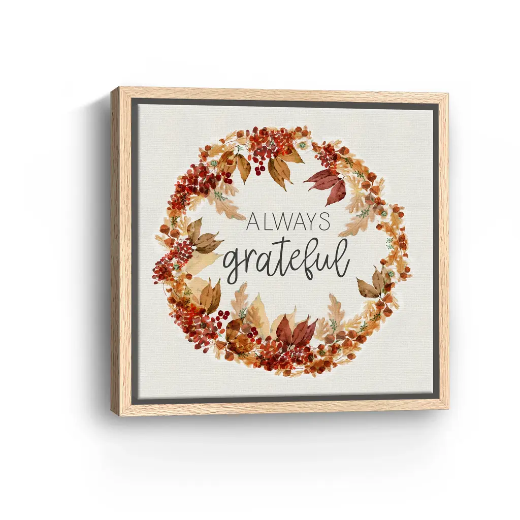 Always Grateful Wreath Canvas Giclee - Framed / Oak / 40x40