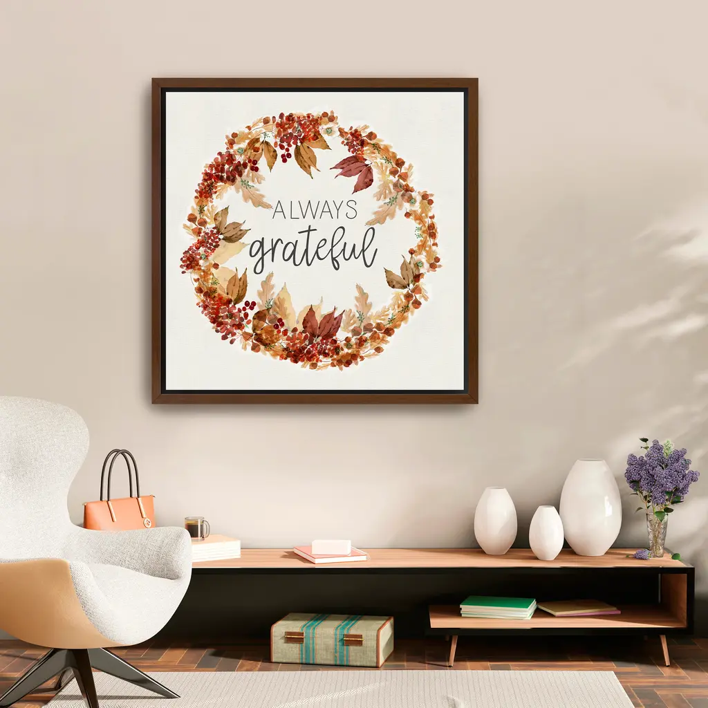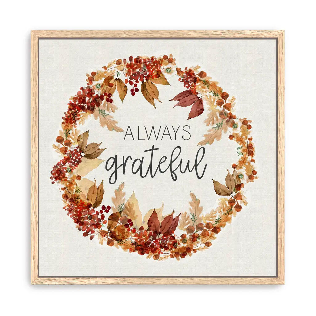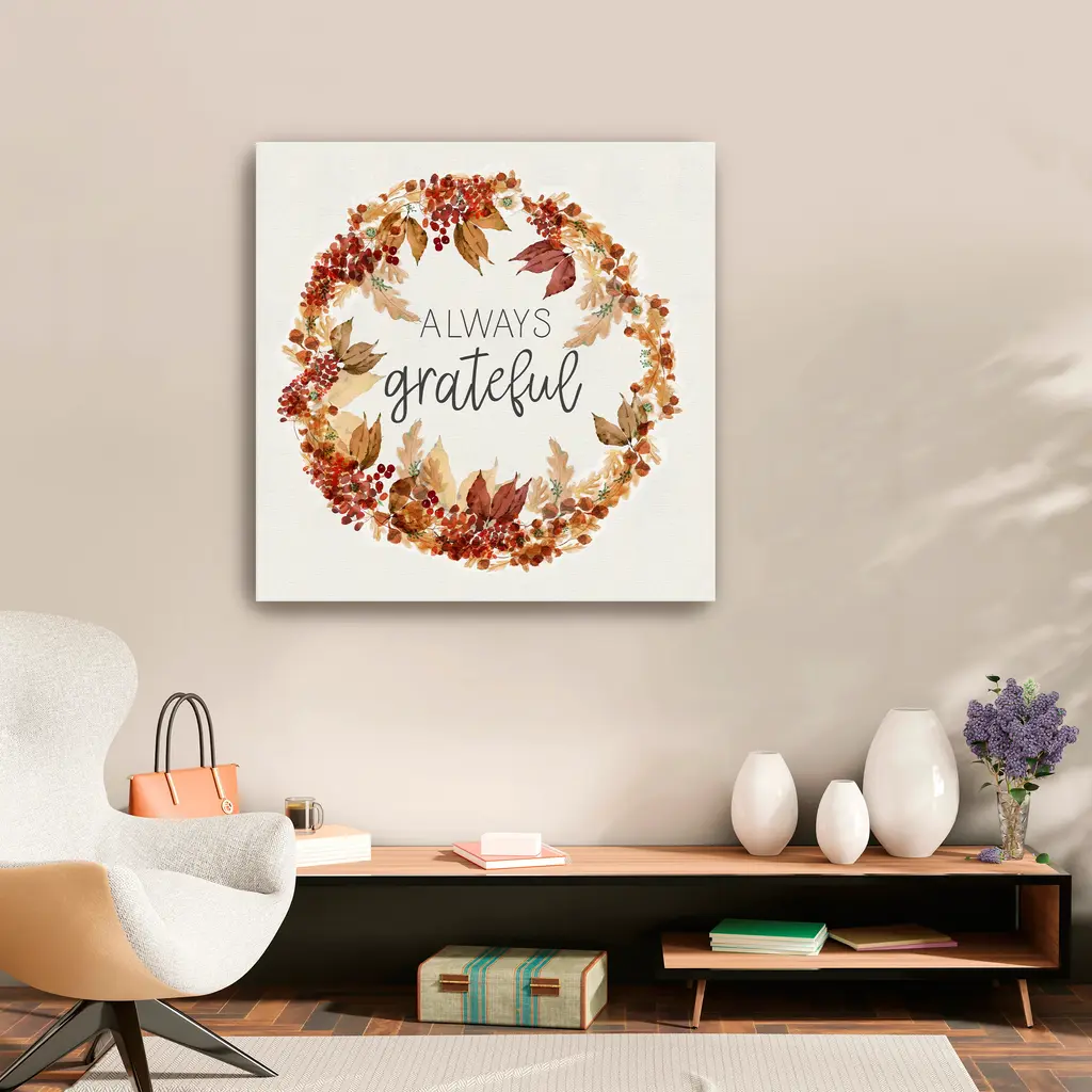 Always Grateful Wreath Canvas Giclee - Wrapped Canvas / None / 20x20