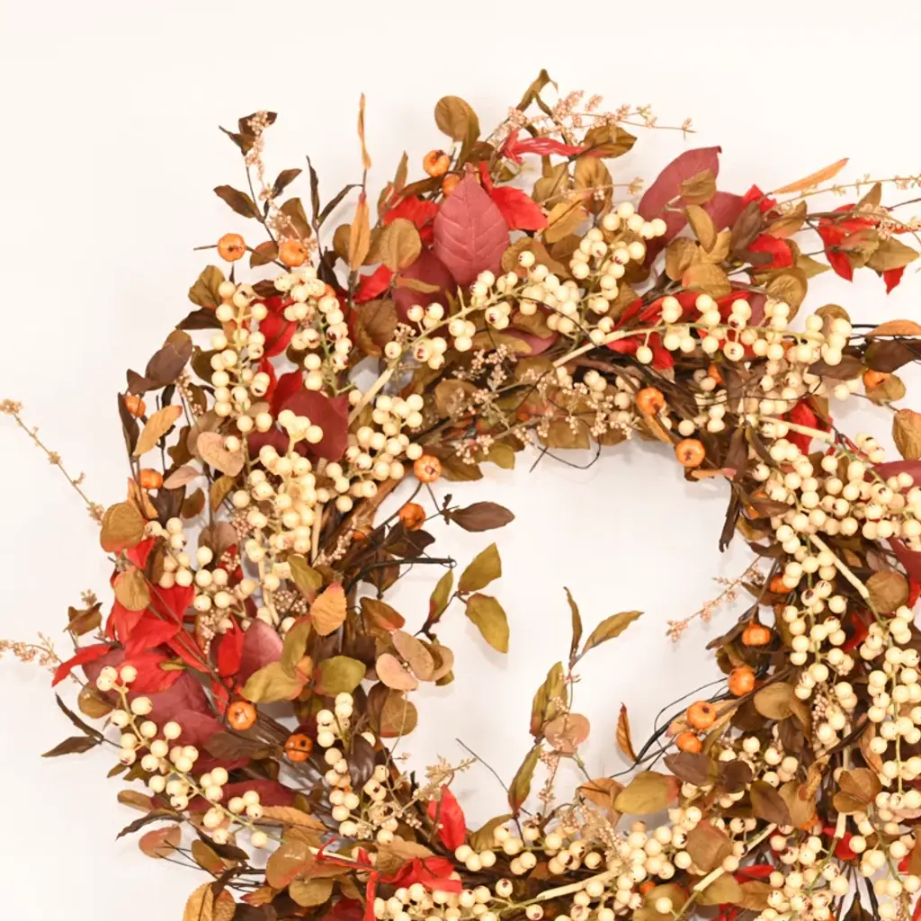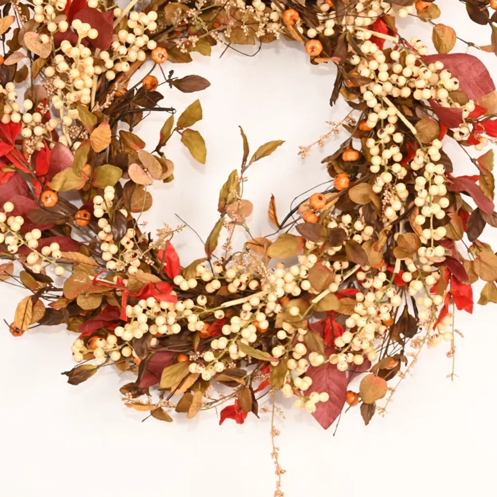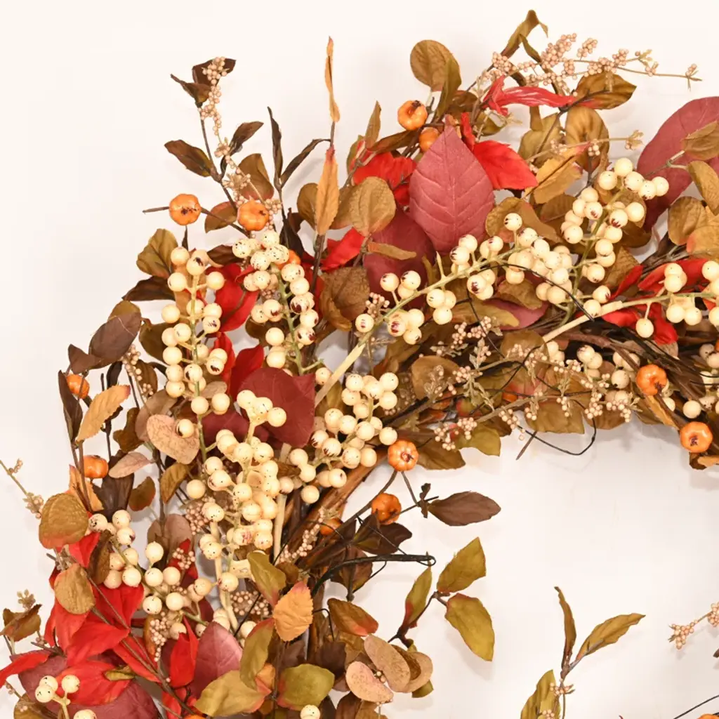 Artificial Farmhouse Blossom Cluster Foliage Berry Thanksgiving Fall Wreath For Front Door