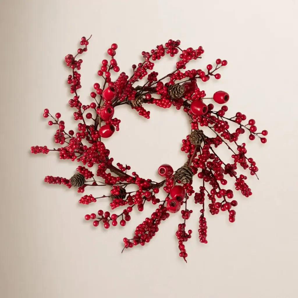 Artificial Frosted Red Berry And Pine Christmas Wreath, 16", Unlit