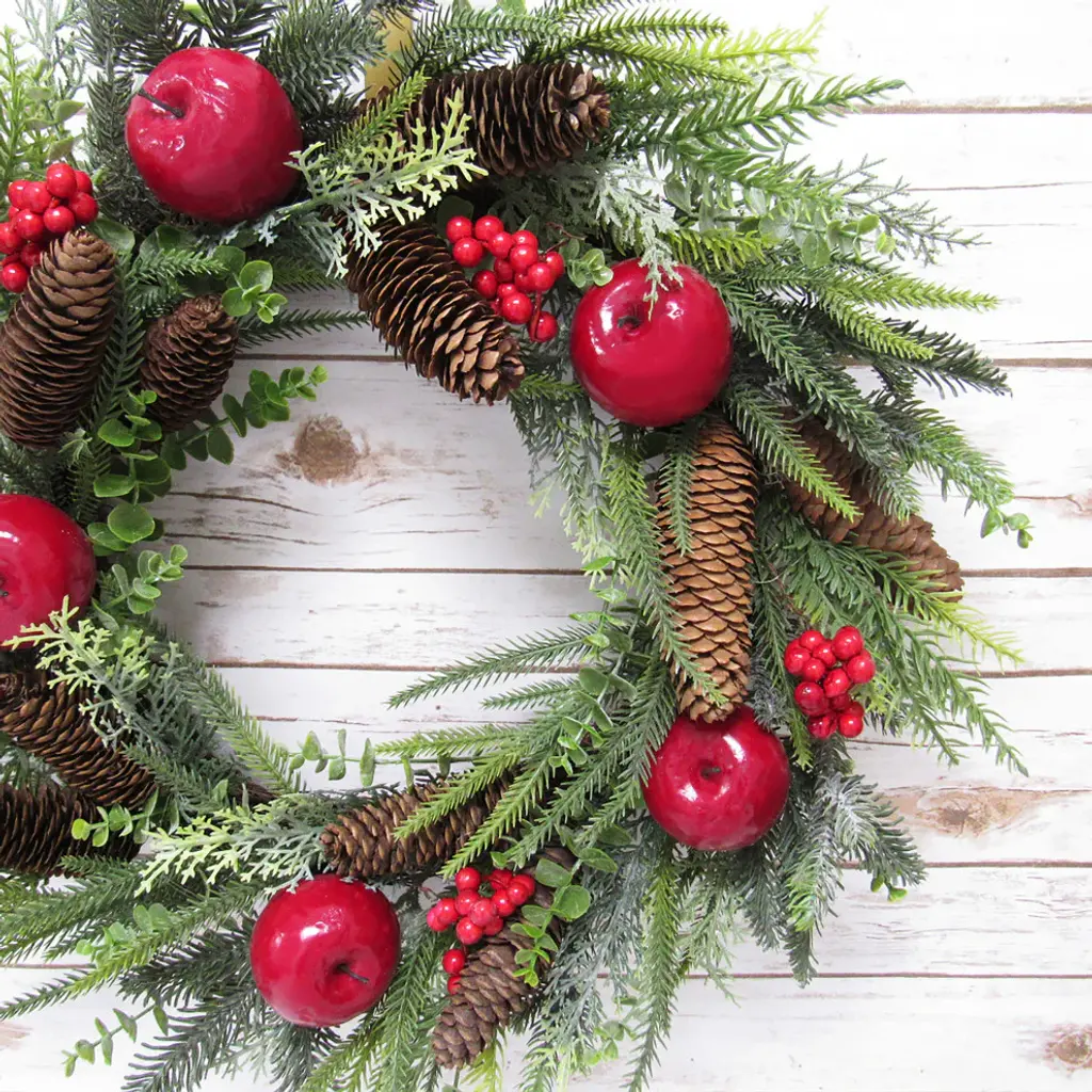 Artificial Mixed Apple Berry Pine Cone Eucalyptus & Pine Christmas Wreath 24"
