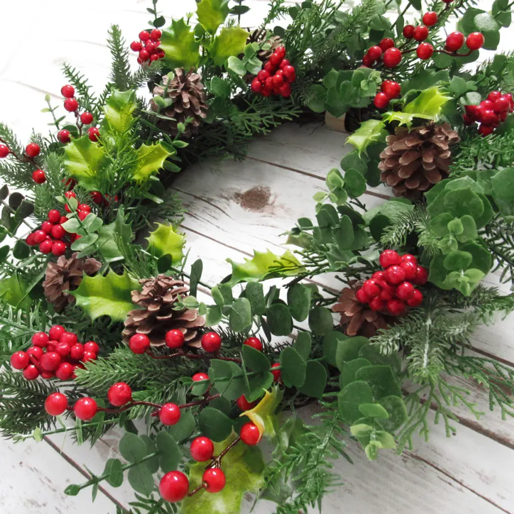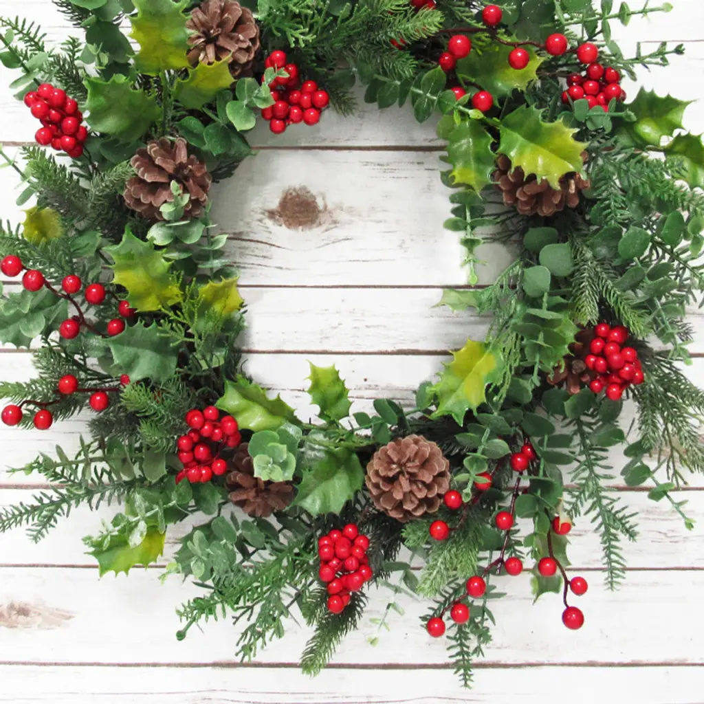 Artificial Mixed Holly Berry Pine Cone Eucalyptus & Pine Christmas Wreath 22"