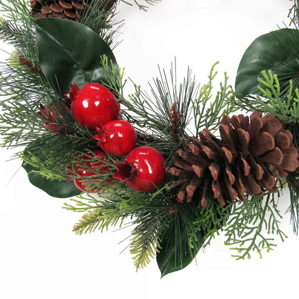 Artificial Mixed Pomegranate Magnolia Leaf & Pine Christmas Wreath 22"