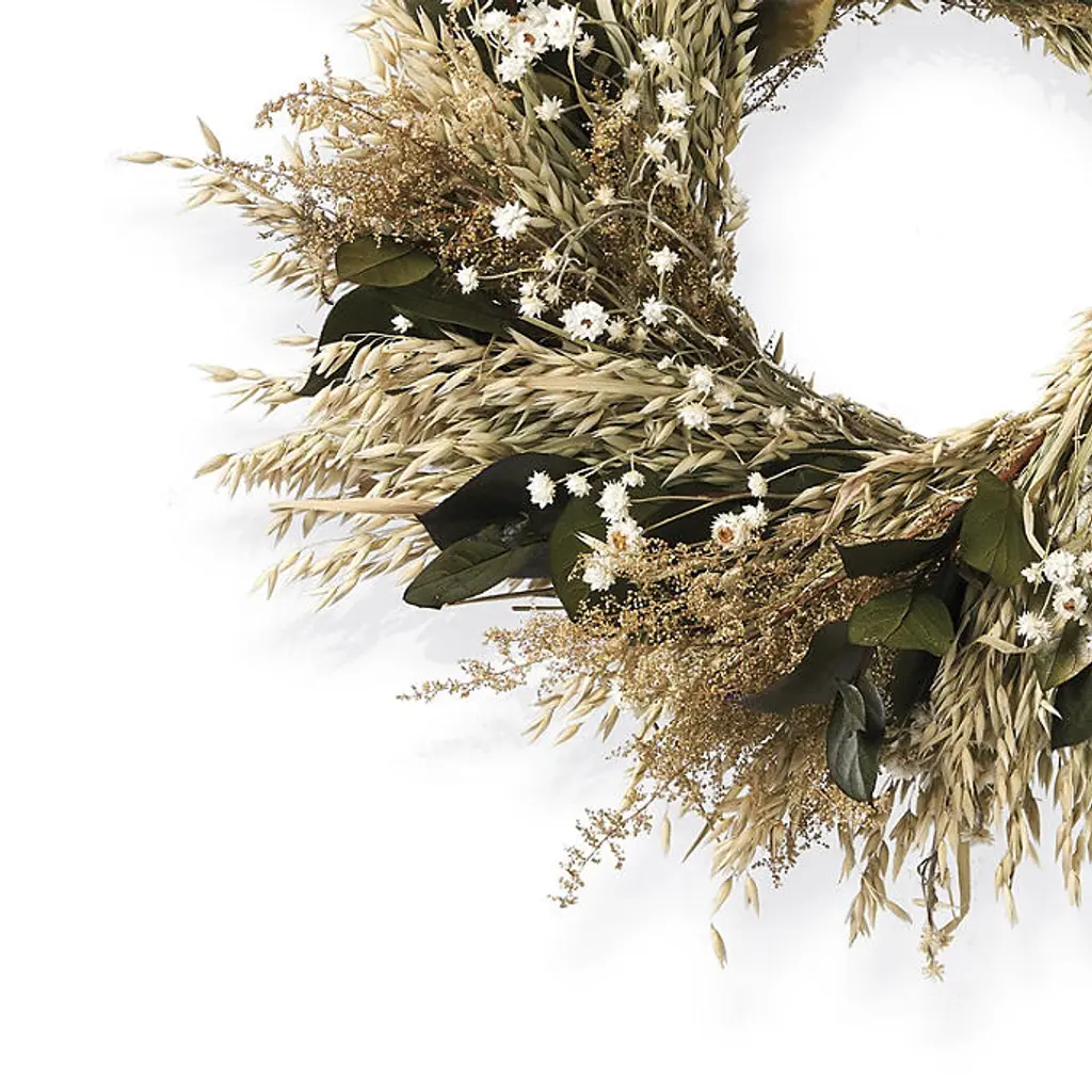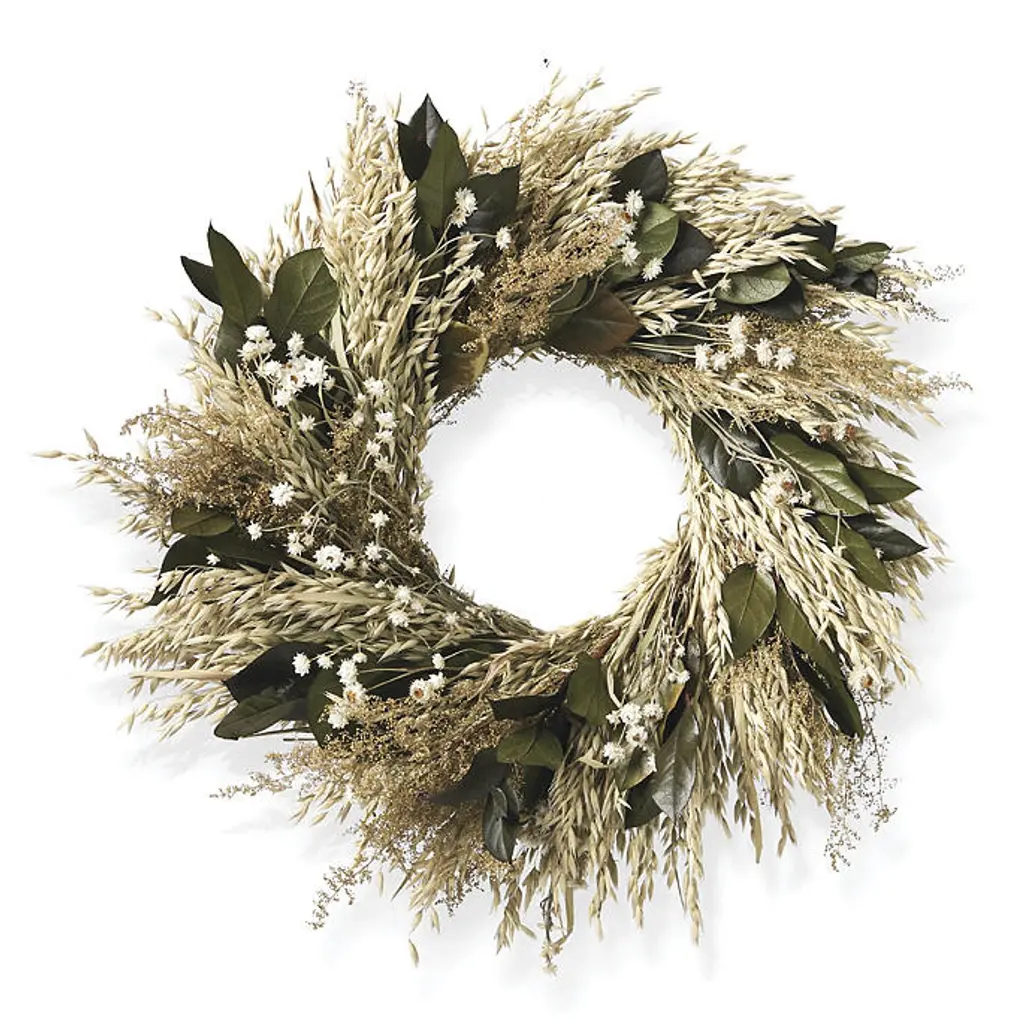 Share the beautiful wonder of nature with guests by hanging this dazzling handmade wreath. Overflowing with realistic dried greenery, including basil, oats and eucalyptus, this provides tasty style, well suited for any indoor or covered outdoor space. Made of naturally dried materials, you can bring everlasting greenery right into your home decor.For indoor or covered outdoor use100% American-grown air-dried flowers and greeneryHandcrafted around a wire frameArrives ready to hangDesign will vary due to the handmade nature of this productFloral pieces may loosen due to movement during transitTo better preserve your wreaths color, keep it away from direct sunlight, high heat and moistureWe recommend limiting outdoor exposure to no longer than three months Made in USAA Frontgate exclusive.At Frontgate, our primary focus is quality. We guarantee that every product we sell will stand up to the supreme test – our customers' satisfaction. To learn more about our policies, visit our Shipping & Processing, Returns & Exchanges and Warranty & Price Guarantee pages.