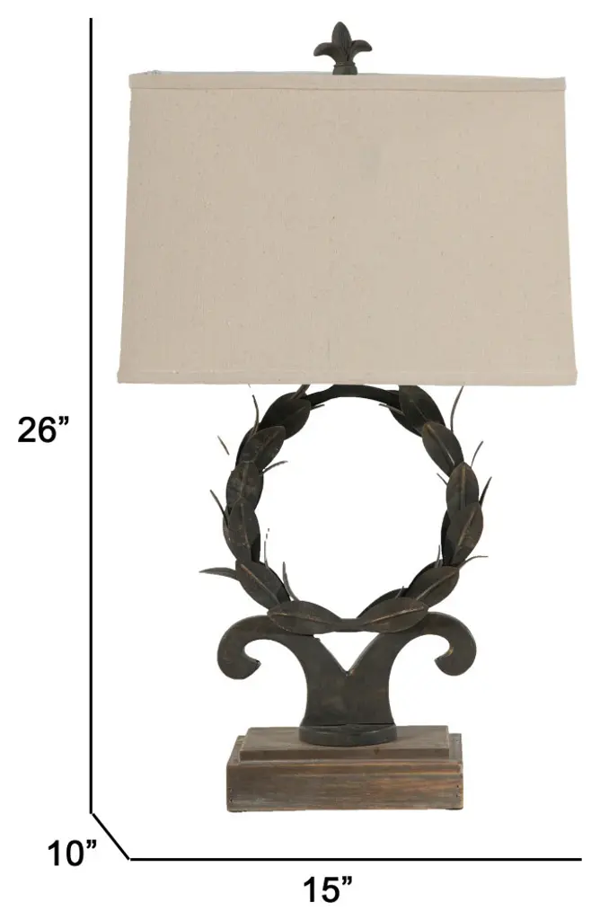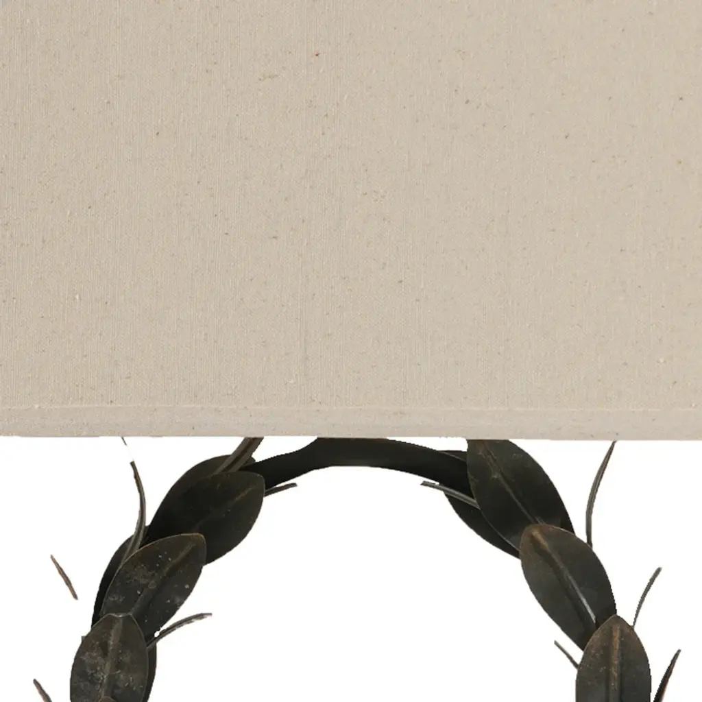 Benzara Bm285090 26" Table Lamp, Laurel Wreath Iron Frame, Off White, Black