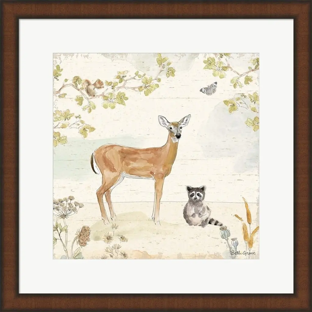 Woodland Wreath II by Beth Grove is a high quality piece of framed artwork. The finished size of this piece is 20.75" X 20.75". It has a Slim Teak with Espresso Brown Edges frame, is single matted and finished with high quality Acrylic Plexiglass.