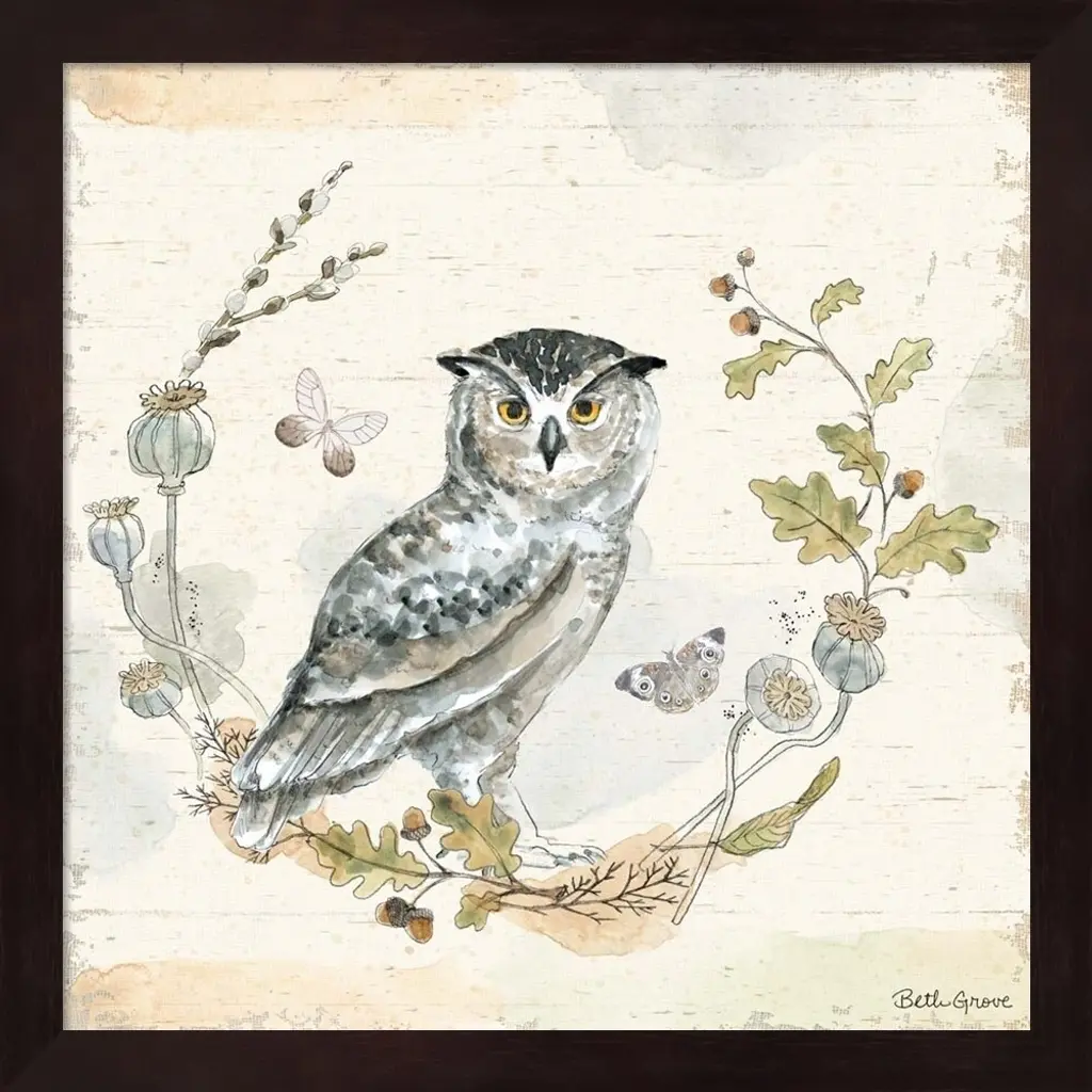 Woodland Wreath IX by Beth Grove is a high quality piece of framed artwork. The finished size of this piece is 13.25" X 13.25". It has a Mahogany Deep Box frame and is finished with high quality glass. 100% Satisfaction Guaranteed.