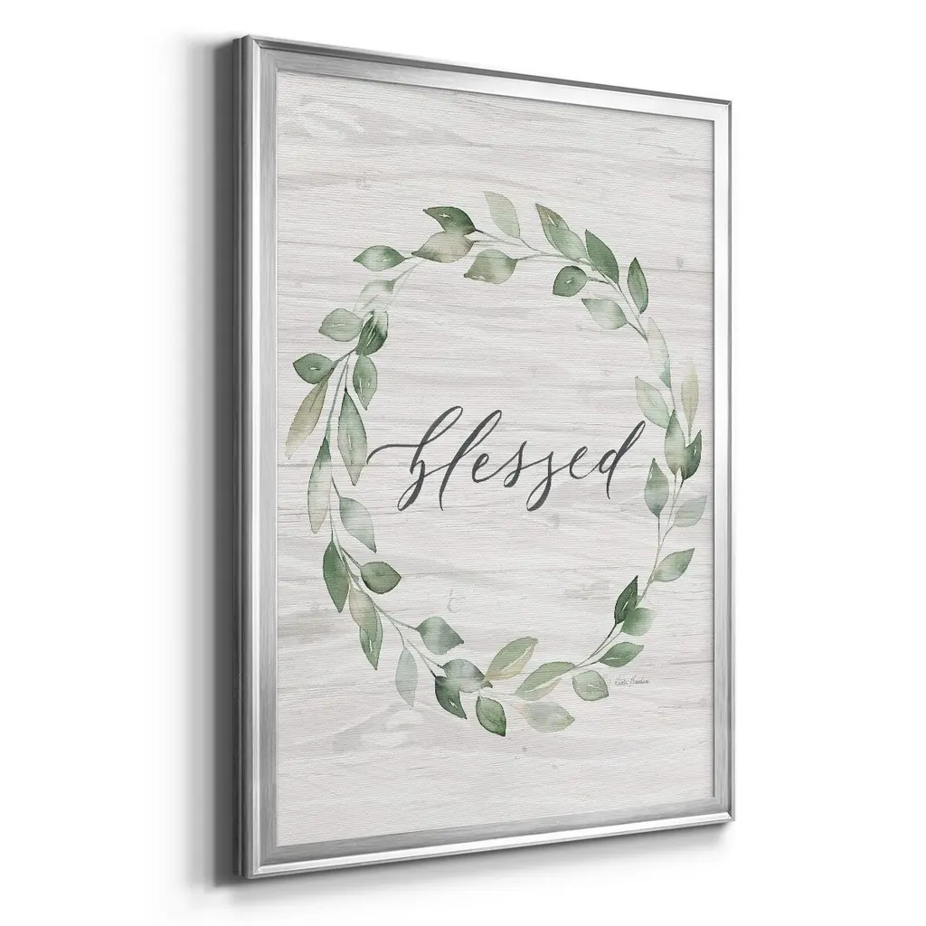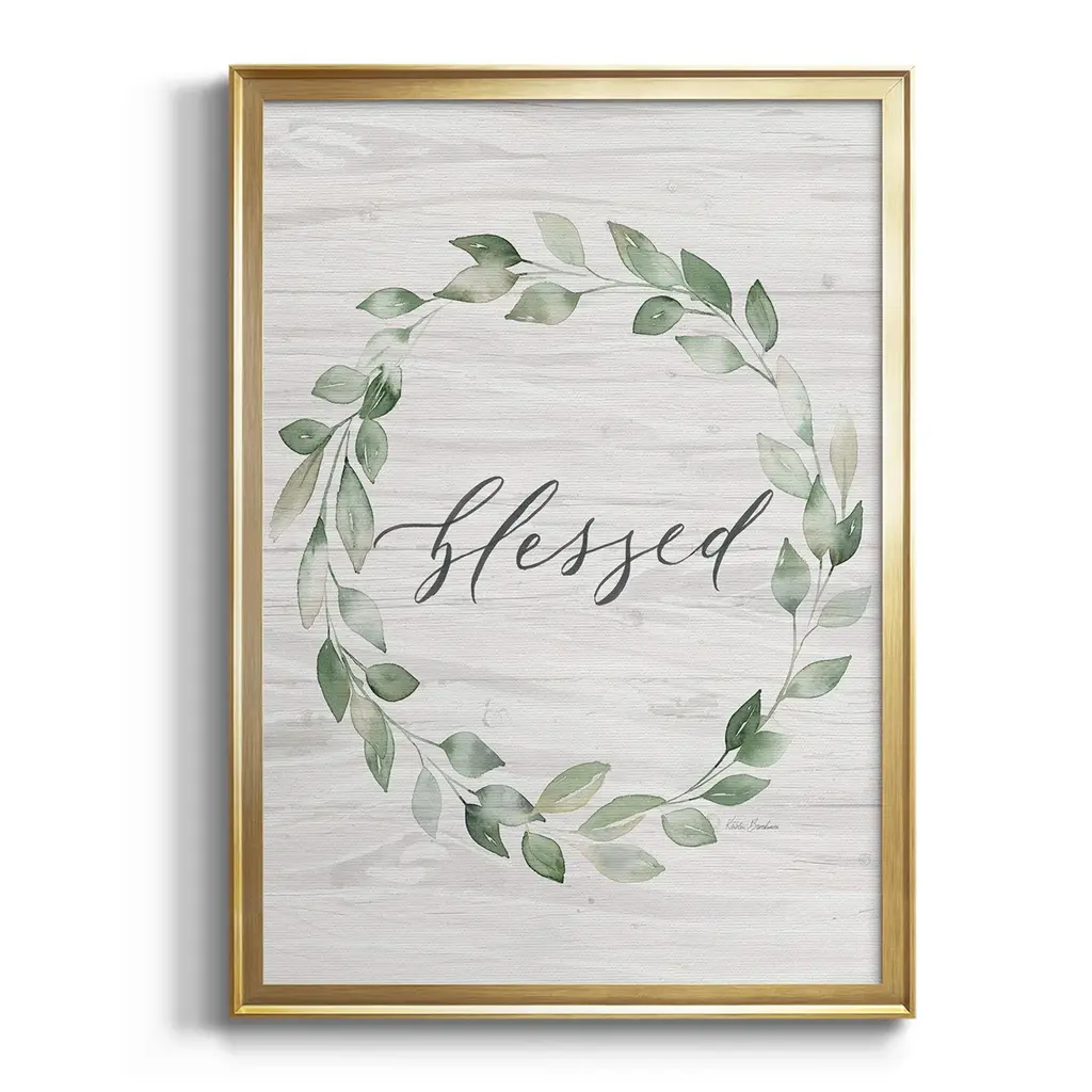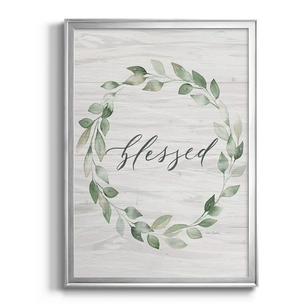 Blessed Wreath Premium Framed Print - Ready to Hang A Premium Framed Print created to last. Framed in distressed wood and available in an array of sizes and colors Featuring a beveled a solid wood stretcher bar, each piece comes ready to hand 4 SIZES AVAILABLE 30.5''X42.5'' - Overall Size 26.5'X36.5'' - Overall Size 22.5''x30.5'' - Overall Size 18.5''x24.5'' - Overall Size Each piece is made to order. Each piece comes with hanging hardware. Made in the USA Ready to Hang