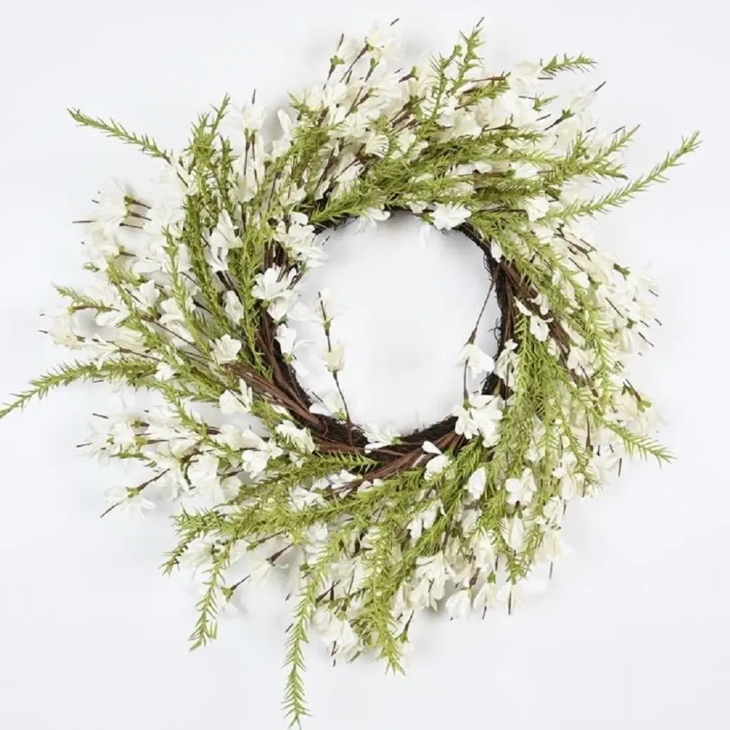 Welcome your guests with a beautiful Blossom Wreath. Perfect for hanging on your front door or in your entryway, this piece is sure to add interest to your space. The quality blossom flowers paired with the flocked twig design is the perfect combination to create a stunning display. The natural twig base gives the piece additional depth and color. The quality polyester leaves are sure to last for seasons to come.