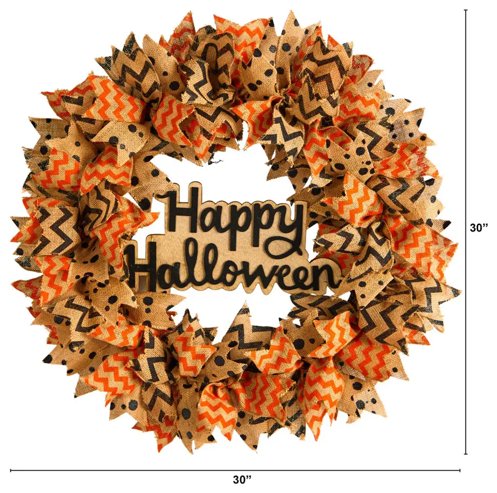 Premium Handmade Deco Mesh Halloween Wreath. The inner ring is made of shimmering, black deco mesh with White and orange ghost ribbon and black/orange striped mesh ribbons. The outer ring is black with orange stripes deco mesh with premium orange and black plaid ghost ribbons and metallic black mesh ribbons. The center wreath is highlighted with a uv protected, aluminum sign which says "BOO y''all." The sign is orange with black lettering and adorable ghosts are painted along the border. There is an adorable Halloween bow placed on the sign. The wreath size is large 24 inch diameter and 6 inches deep.