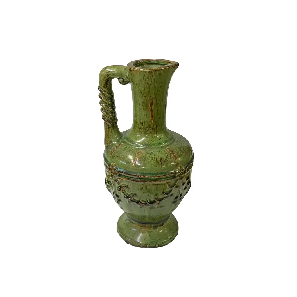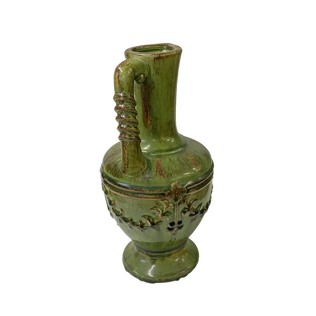 Discover timeless elegance with our Brown Olive Green Ceramic Leaf Wreath Pattern Jar Shape Vase. This vase showcases a harmonious blend of earthy brown and olive green tones, adorned with delicate ceramic leaf wreath patterns that add a touch of nature-inspired charm. The jar shape design offers a perfect balance between classic and contemporary aesthetics, making it a versatile centerpiece for any space. Elevate your interior decor with this captivating vase, carefully crafted to infuse warmth and style into your surrounding Dimensions: Dia 8" x h16" Origin: China Material: Ceramic Condition: Good, no damage For all USA domestic continental customers (from 48 states), there is a flat shipping fee of $55, which includes insurance and handling charges.
