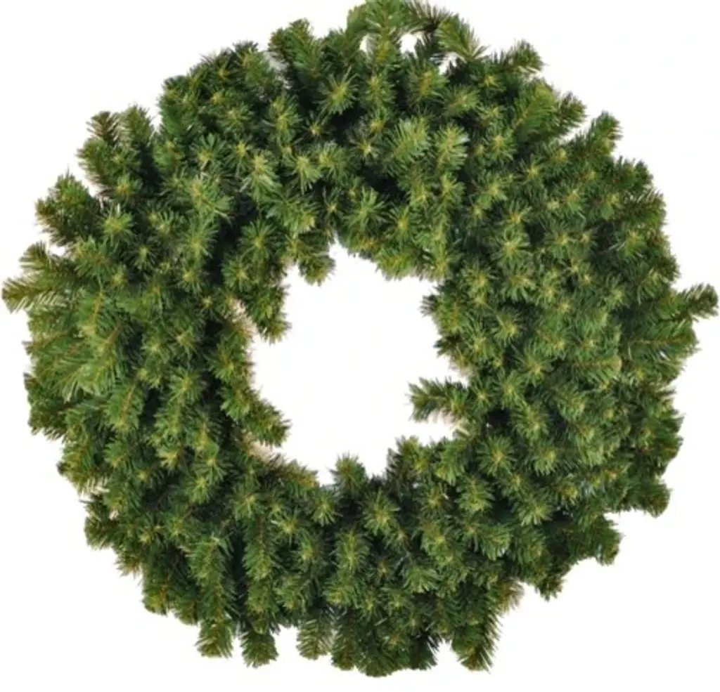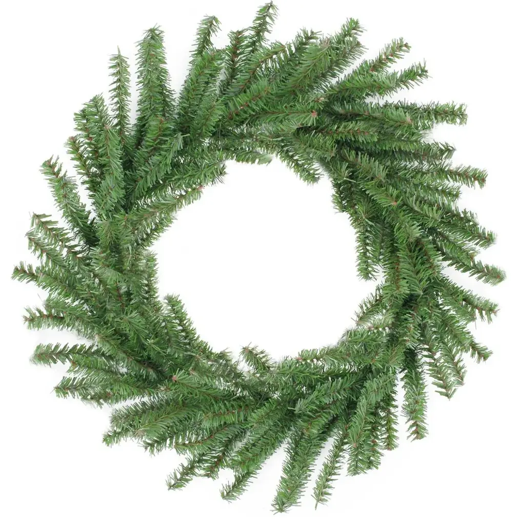 Features 2" wide needles with perfectly shaped tapered tips that are a medium green two-tone color and have a natural lush look and feelProduct Features:Unlit40 tipsNo assembly required-wreath comes in 1 pieceFor indoor use or outdoor usHeavy duty ring metal frame backing for hangingDimensions: 12" diameter (measured from outermost tip to outermost tip across the wreath)Material(s): PVC/metal