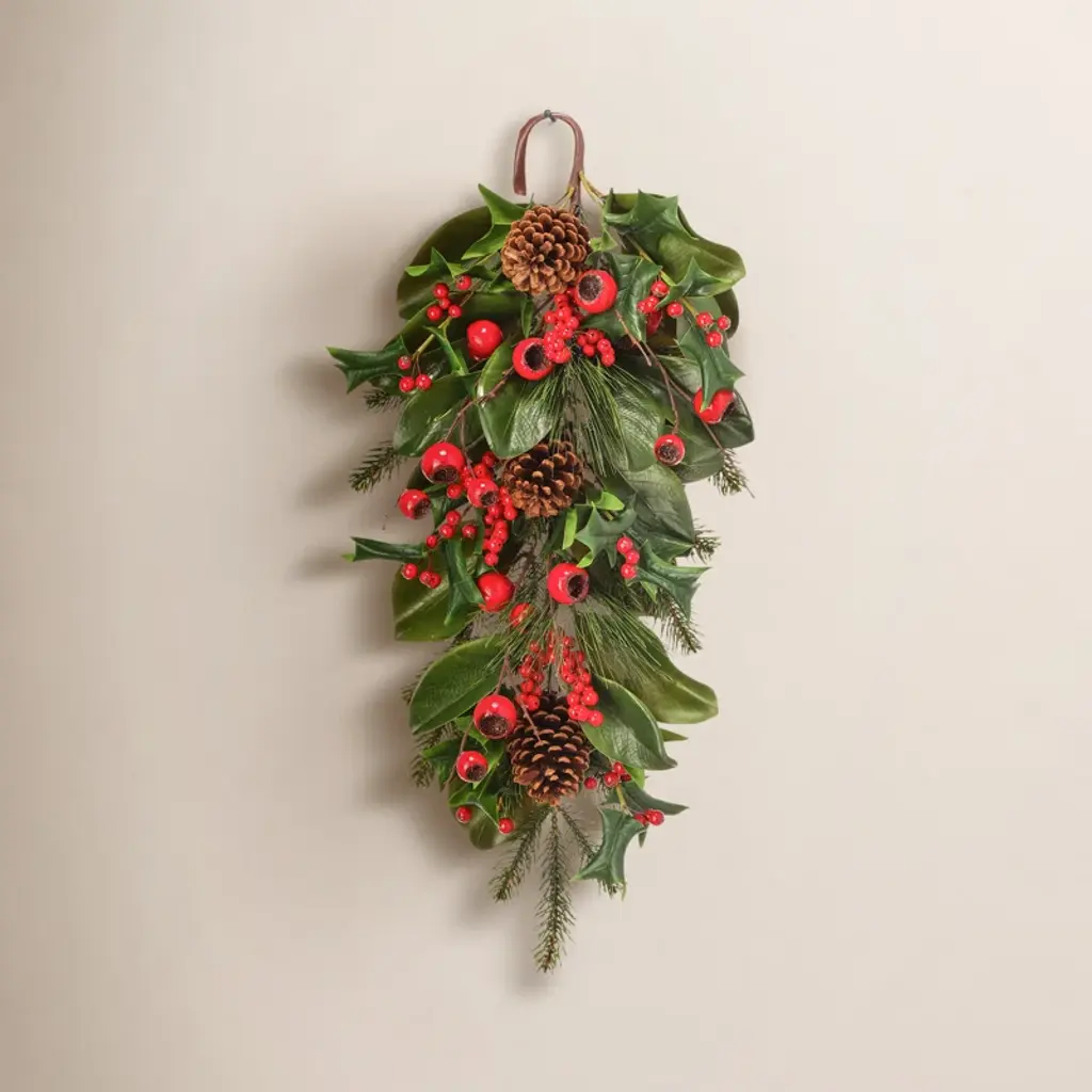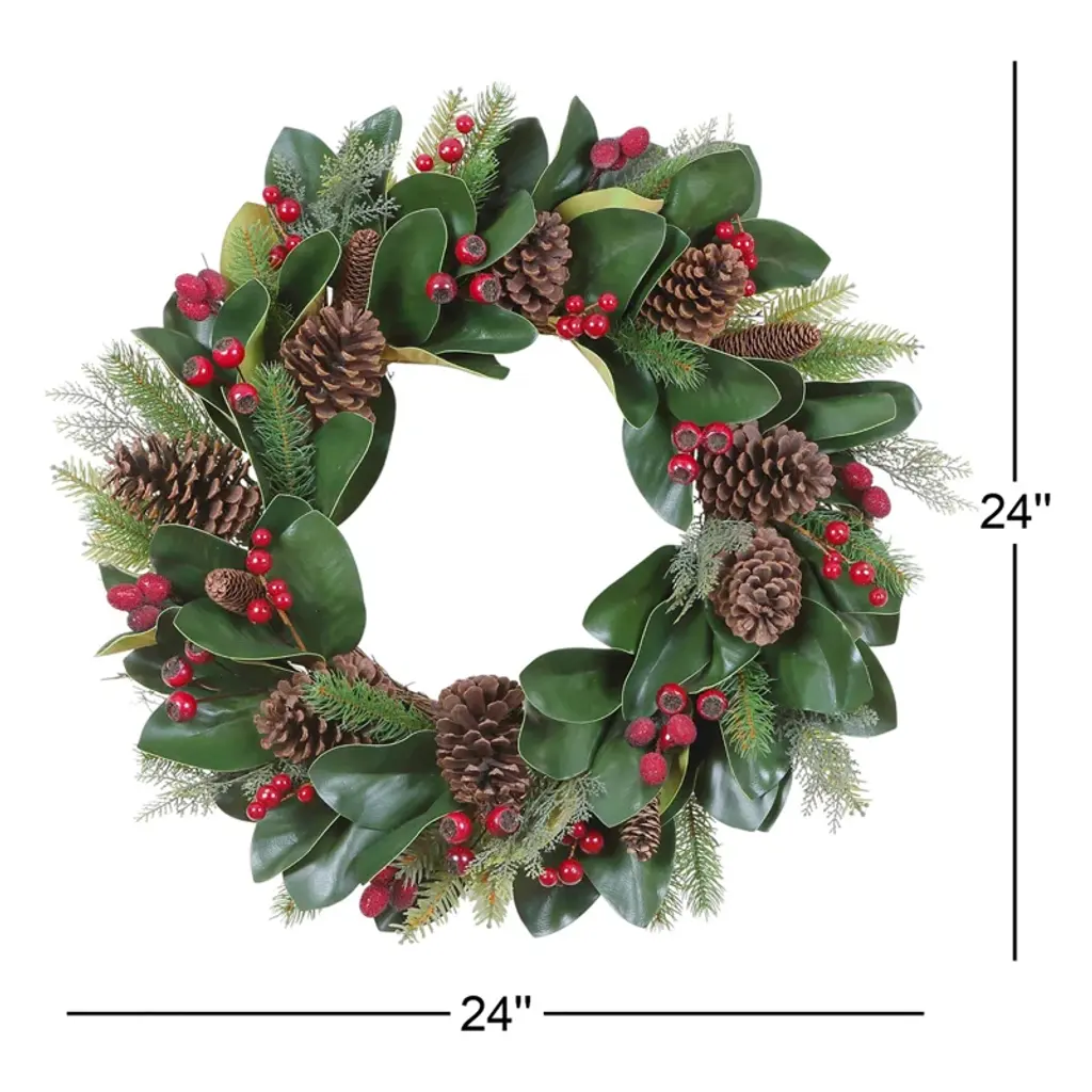 Christmas Magnolia W Berry Cone Wreath