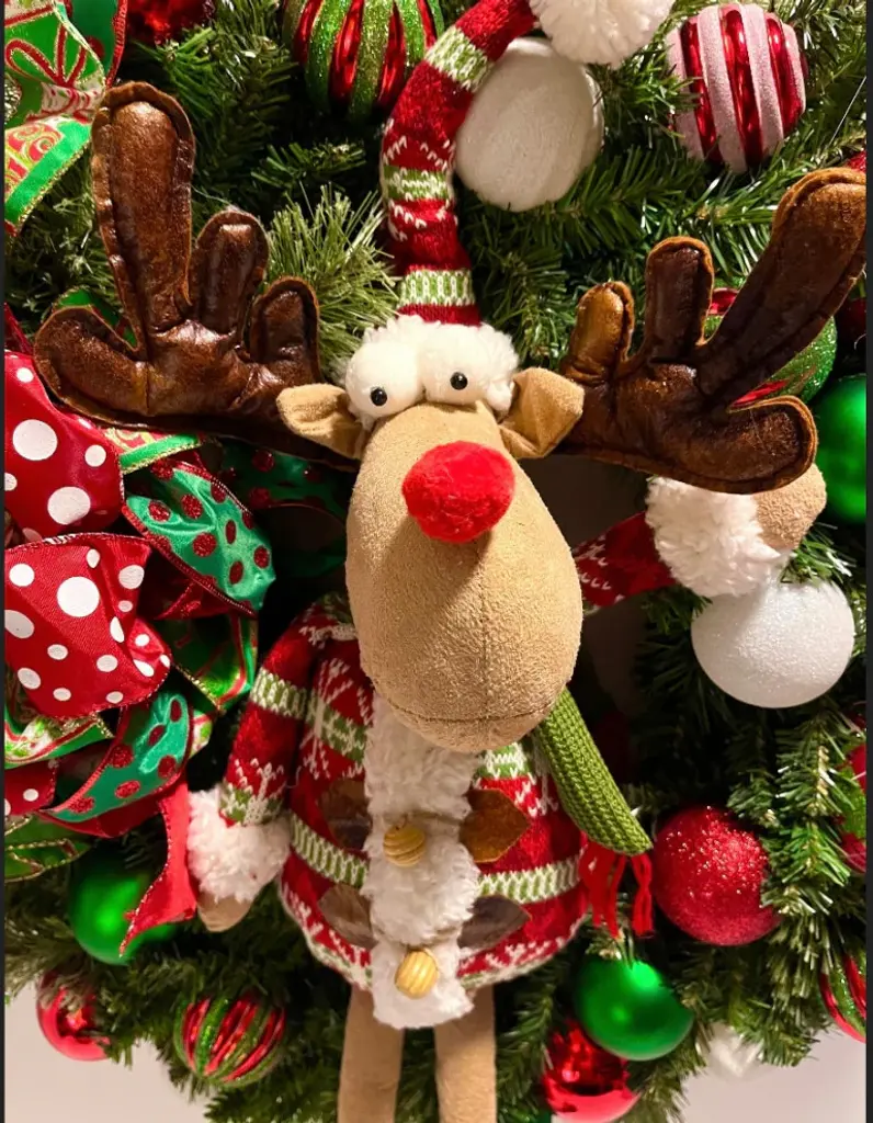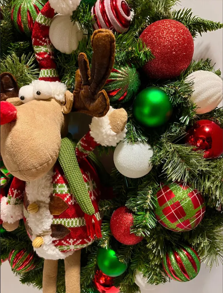 Christmas Wreath Winter Reindeer Red Green White Shatterproof