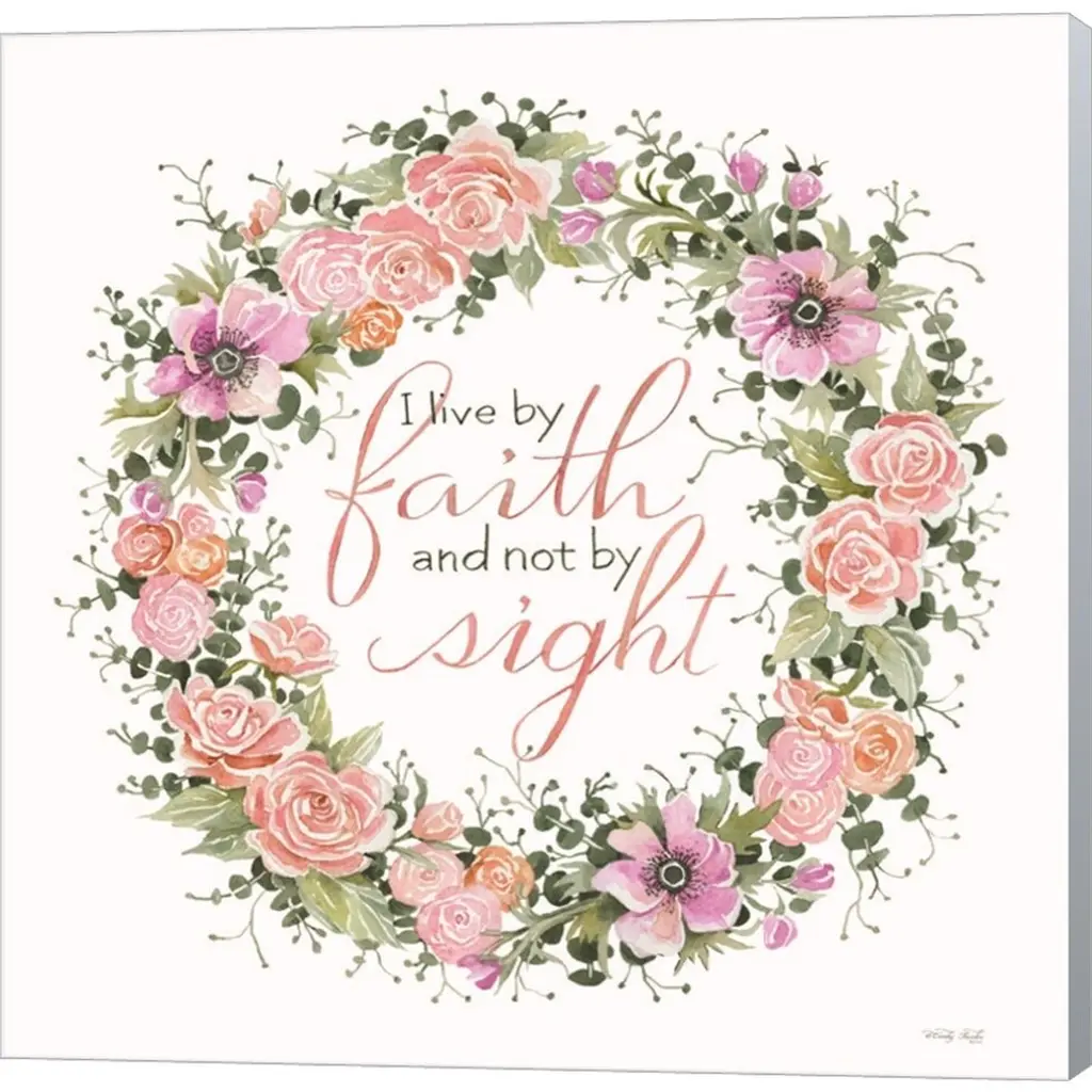 Cindy Jacobs 'Live By Faith Floral Wreath' Canvas Art - 12 X 12