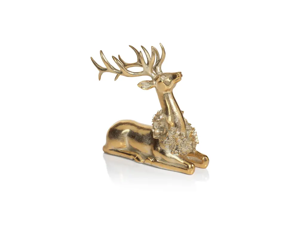 Clara Golden Sitting Deer Figurine With Floral Wreath