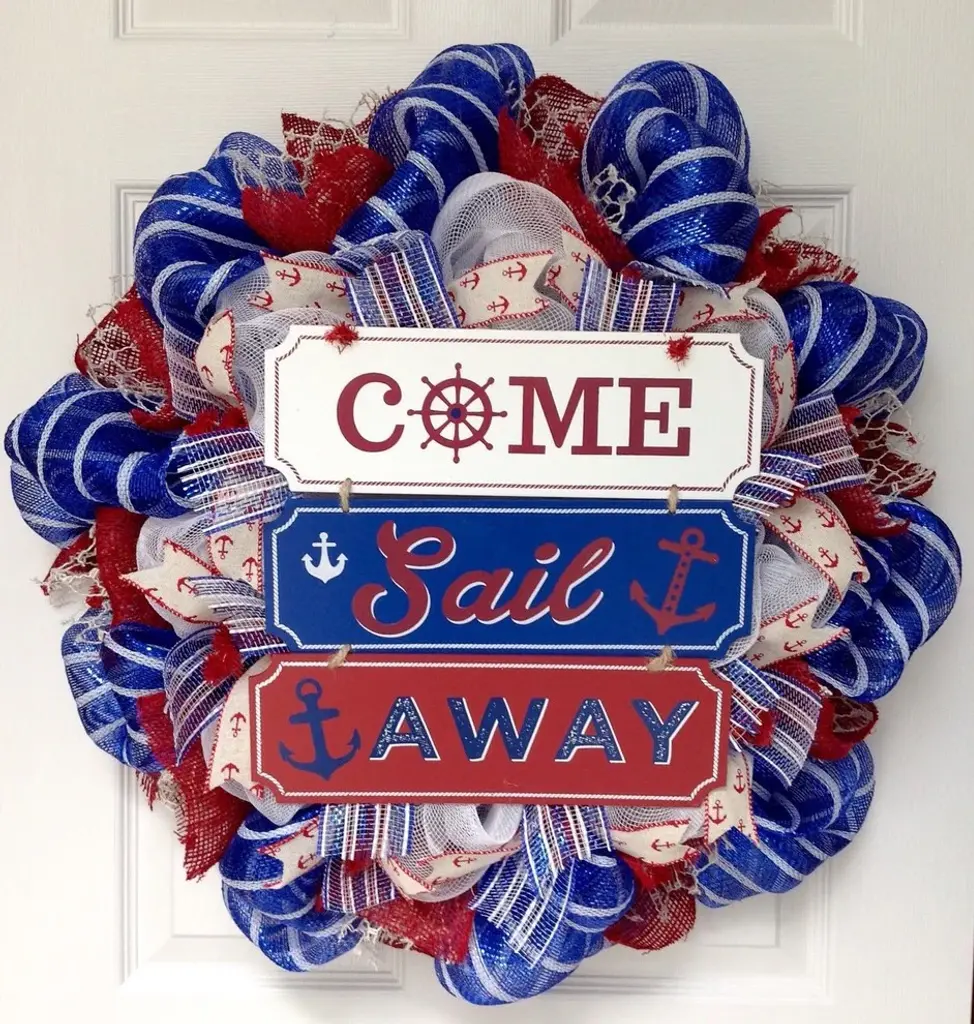 Come Sail Away Summer Nautical Wreath Handmade Deco Mesh