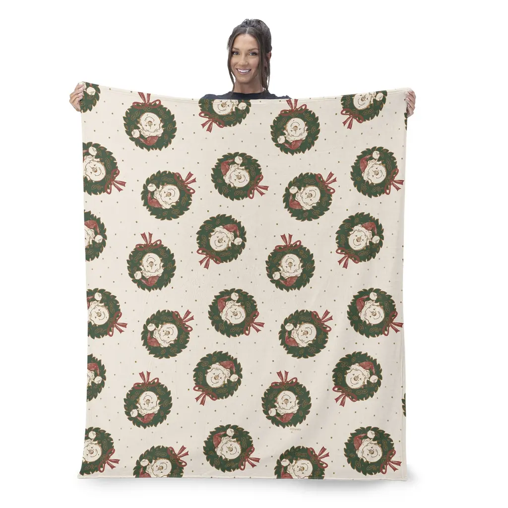 Disney Winnie The Pooh Christmas Silk Touch Sherpa Throw Blanket - 50" X 60" - Pooh Wreath