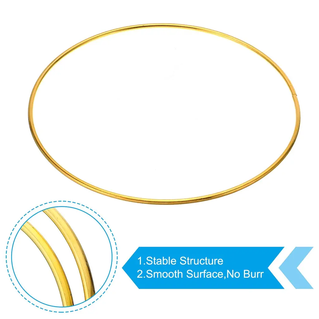 Get creative and bring back the nostalgia of dream catchers with these Dream Catcher Rings. Crafted with a sturdy metal material and a smooth, rust-resistant surface, these gold rings are perfect for making beautiful decorations. Whether you want to adorn your walls, desk, car interiors, or wedding venues, these 8pcs Macrame Wreath Floral Round Ring Hoops are the perfect choice. Let your imagination run wild as you weave wool, beads, ribbons, flowers, feathers, and more onto these versatile rings. With an outer diameter of 150mm and a wire diameter of 2.8mm, these rings provide ample space for your creative designs. Embrace your DIY style and transform any space with these Dream Catcher Rings.Features: