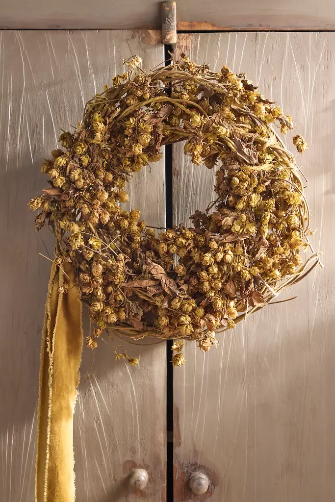 Hand-harvested and dried for long-lasting beauty, golden brown hops bring an abundance of natural texture to this rustic wreath. Terrain is a garden and home brand deeply rooted in nature and plant life. From weather-ready planters and outdoor furniture to artisan-made wreaths and hand-poured candles, their curated product assortment explores the boundaries of life lived outside and in. With a globally conscious, locally influenced point of view, Terrain offers inspired seasonal solutions for creative living, gathering, and gardening.