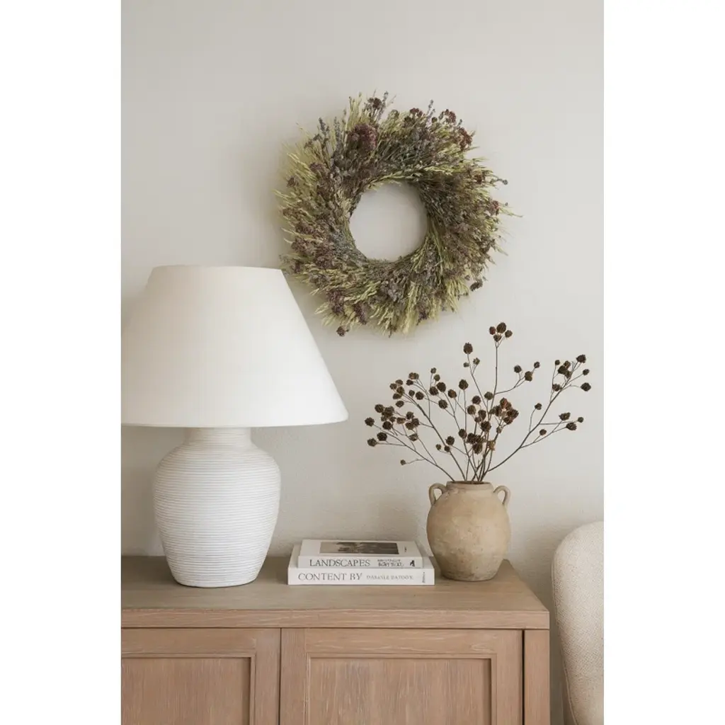 This handcrafted wreath, made in the USA, brings timeless beauty to your home. Its versatile design complements any decor, indoors or outdoors. Enjoy its enduring charm.