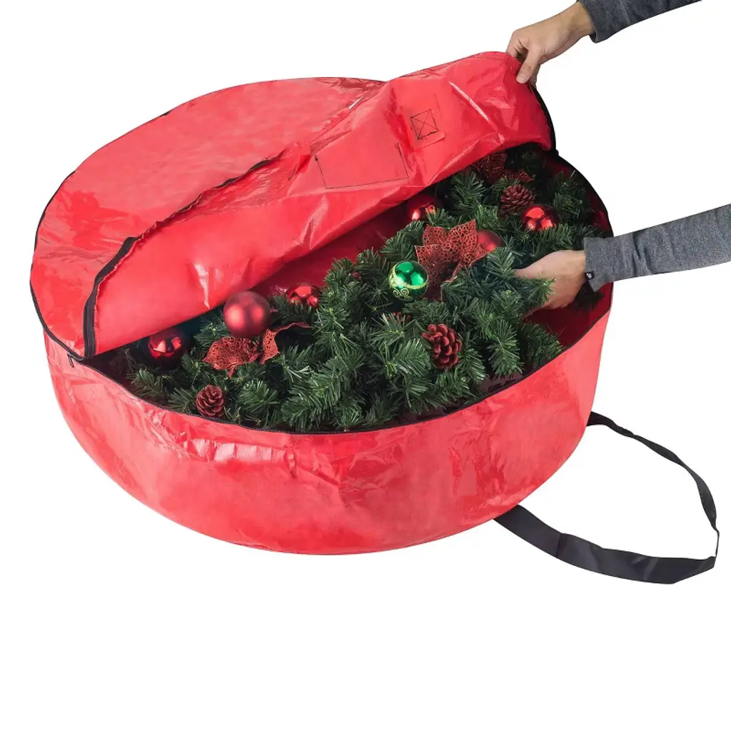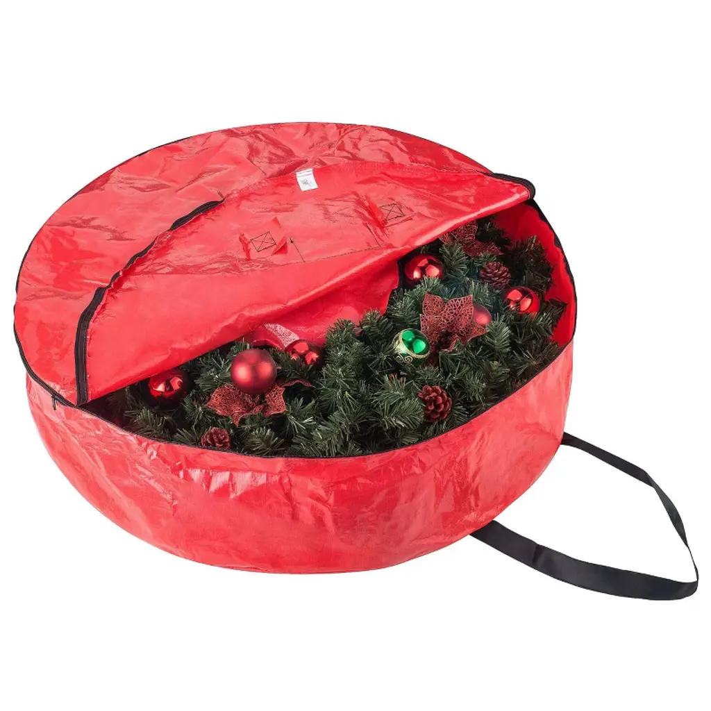 Clean up after the holidays in a flash with this Christmas Wreath Storage Container by Elf Stor. Simply place your Christmas decor inside this large wreath holder's interior, zip it up, and store it in your garage, attic, or closet until the season rolls around next year, and rely on the woven polypropylene construction to protect your large Christmas wreath from dust and debris. Sturdy nylon handles make this Christmas wreath storage bag simple to carry, while an identification label on the front lets you know what's inside when you're ready to unpack.