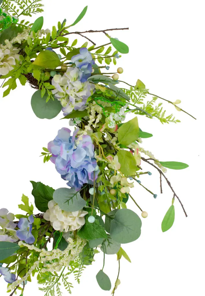 Eucalyptus And Hydrangea Floral Fern Spring Wreath, Blue/green 26"
