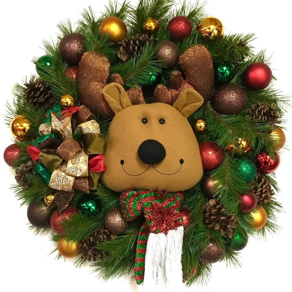 Extra Large 30" Indoor And Outdoor Winter Christmas Deer Wreath