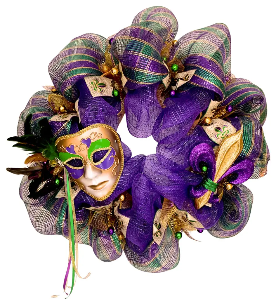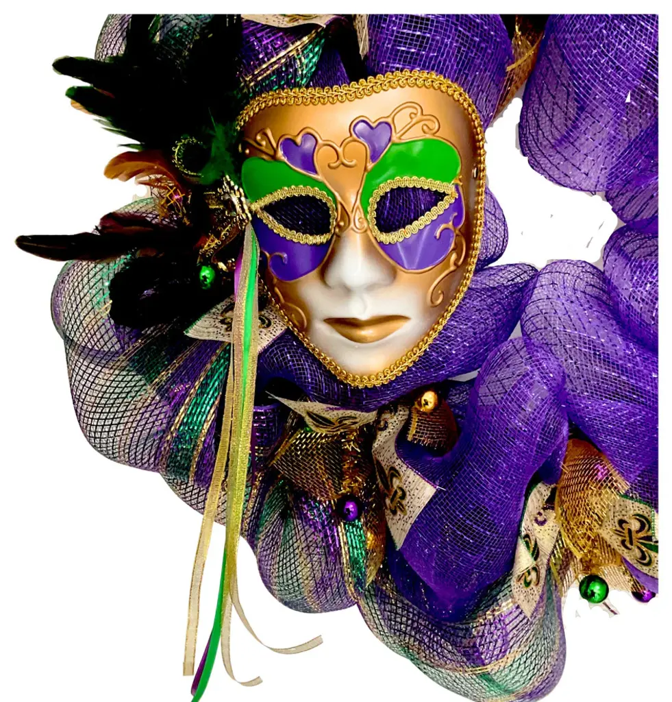 Extra Large Mardi Gras Wreath With Beautiful Mask And Fleur De Lis 28"