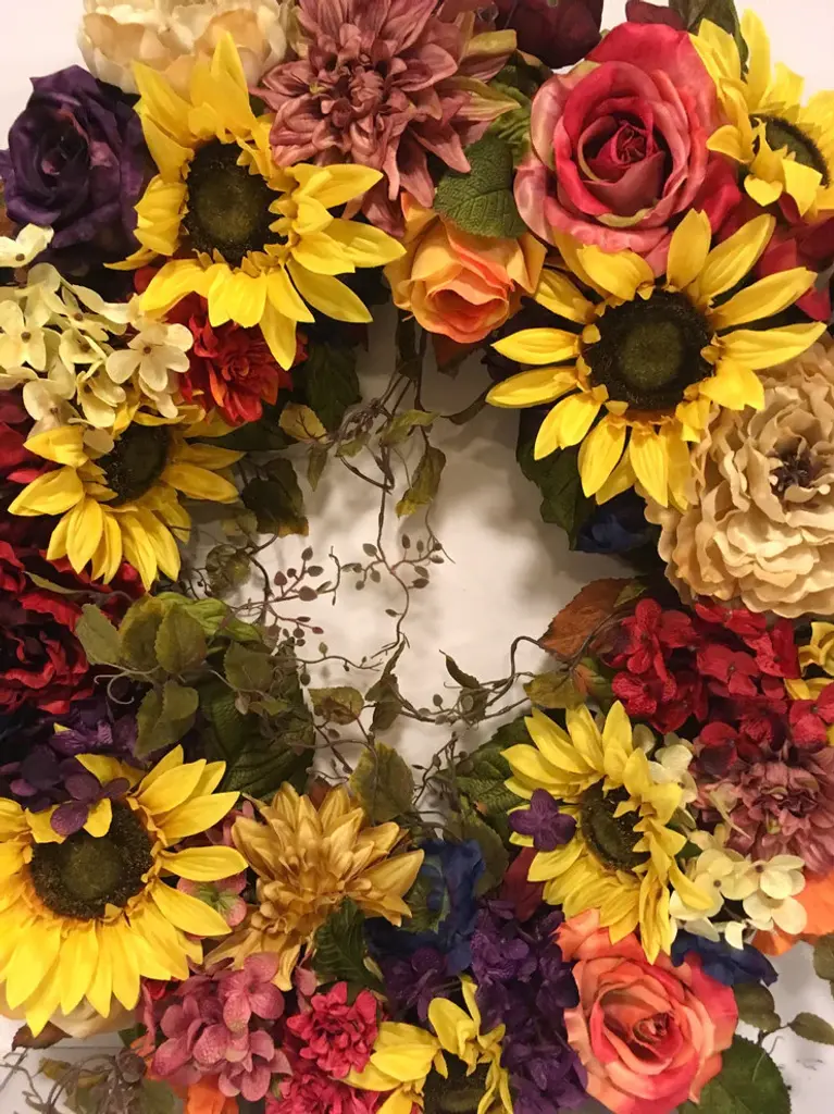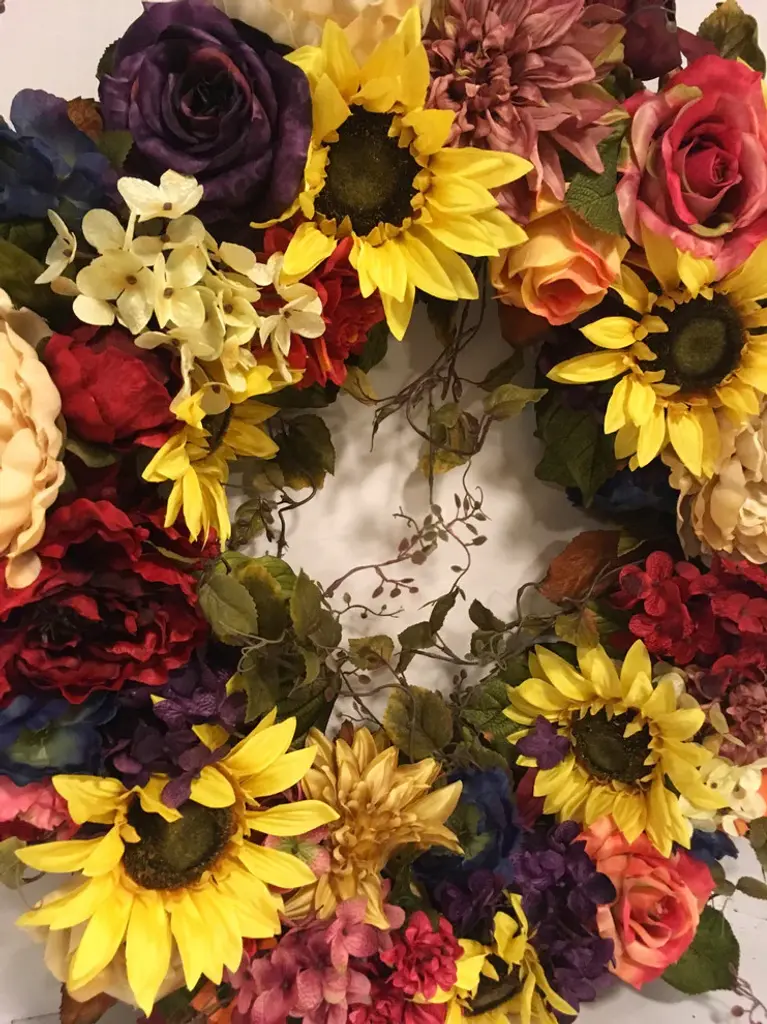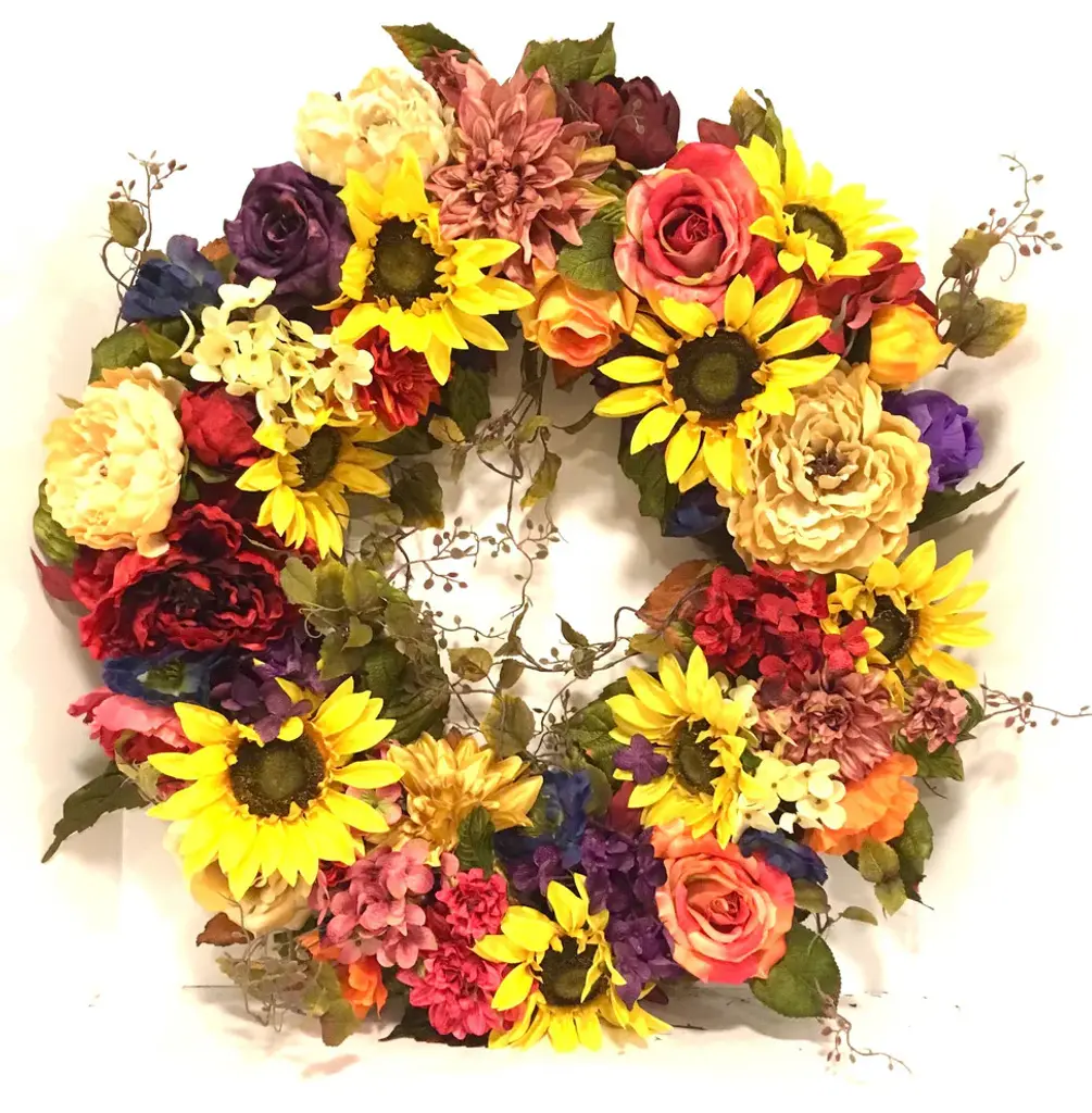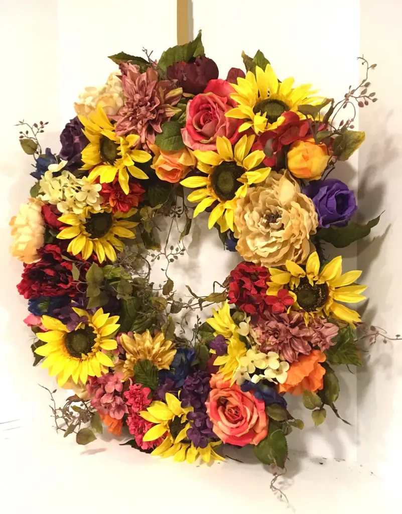 Fall Sunflower Wreath All Season Peony Hydrangea Rose Rust Gold Orange Purple