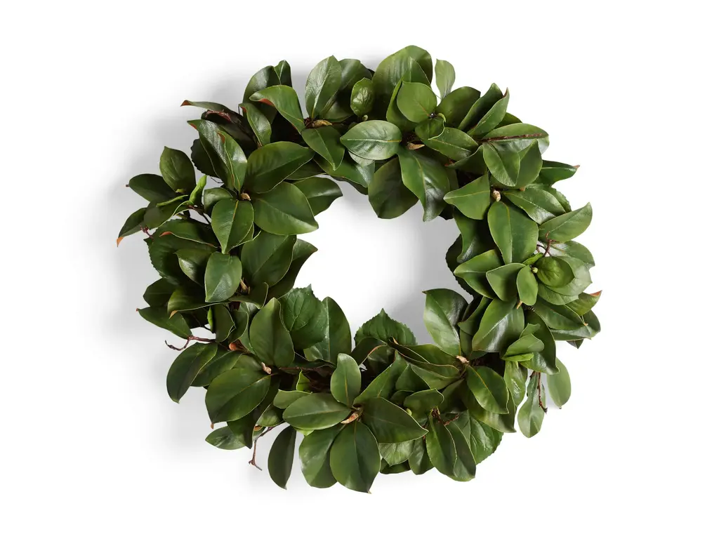 Crafted to capture the natural beauty of magnolia leaves, this faux wreath will look fresh and new all season long. Easy to hang and artfully arranged to look lush and full, our Magnolia Twig Wreath will add an organic element to your holiday décor, year after year. Lush wreath crafted from faux magnolia leaves attached to metal wire.