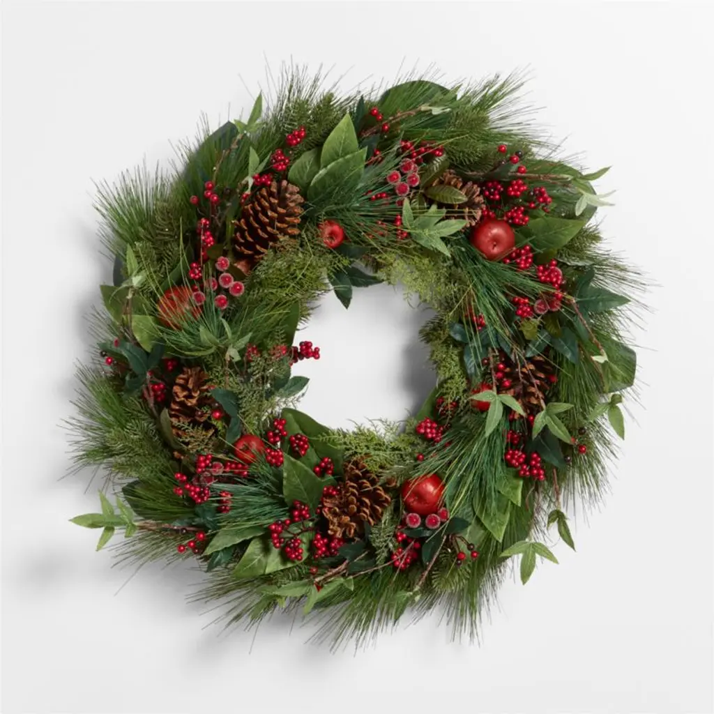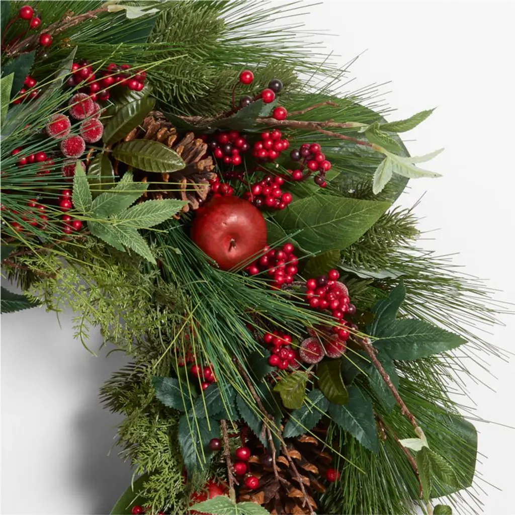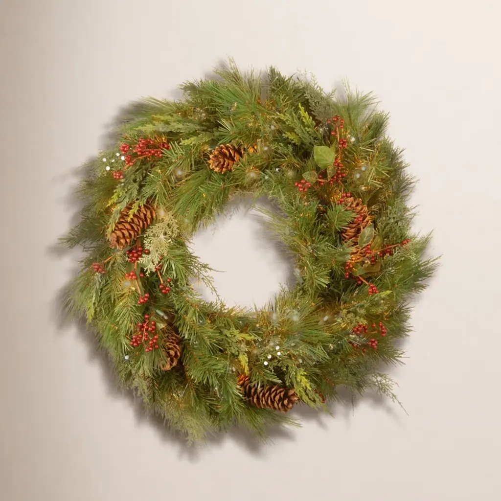 Faux Pre-Lit Frosted Red Berry & Pine Wreath 30"