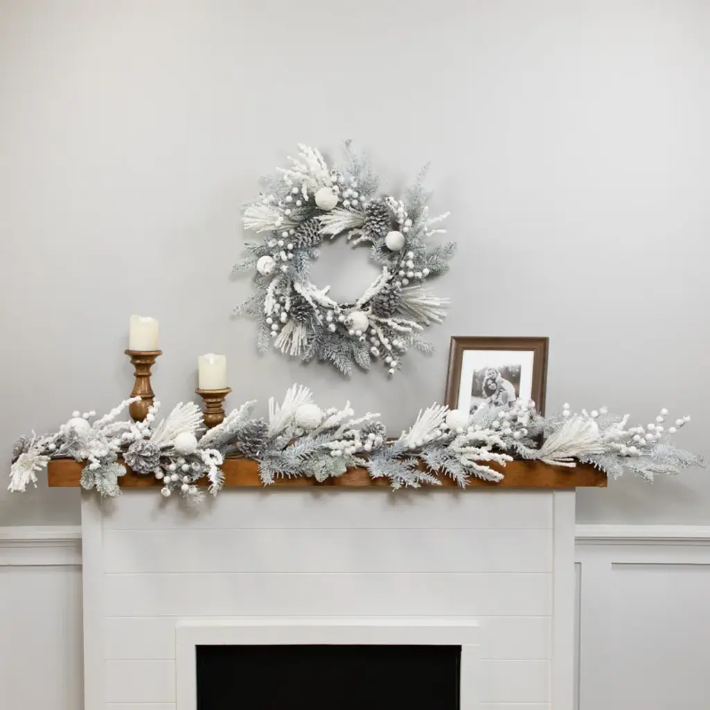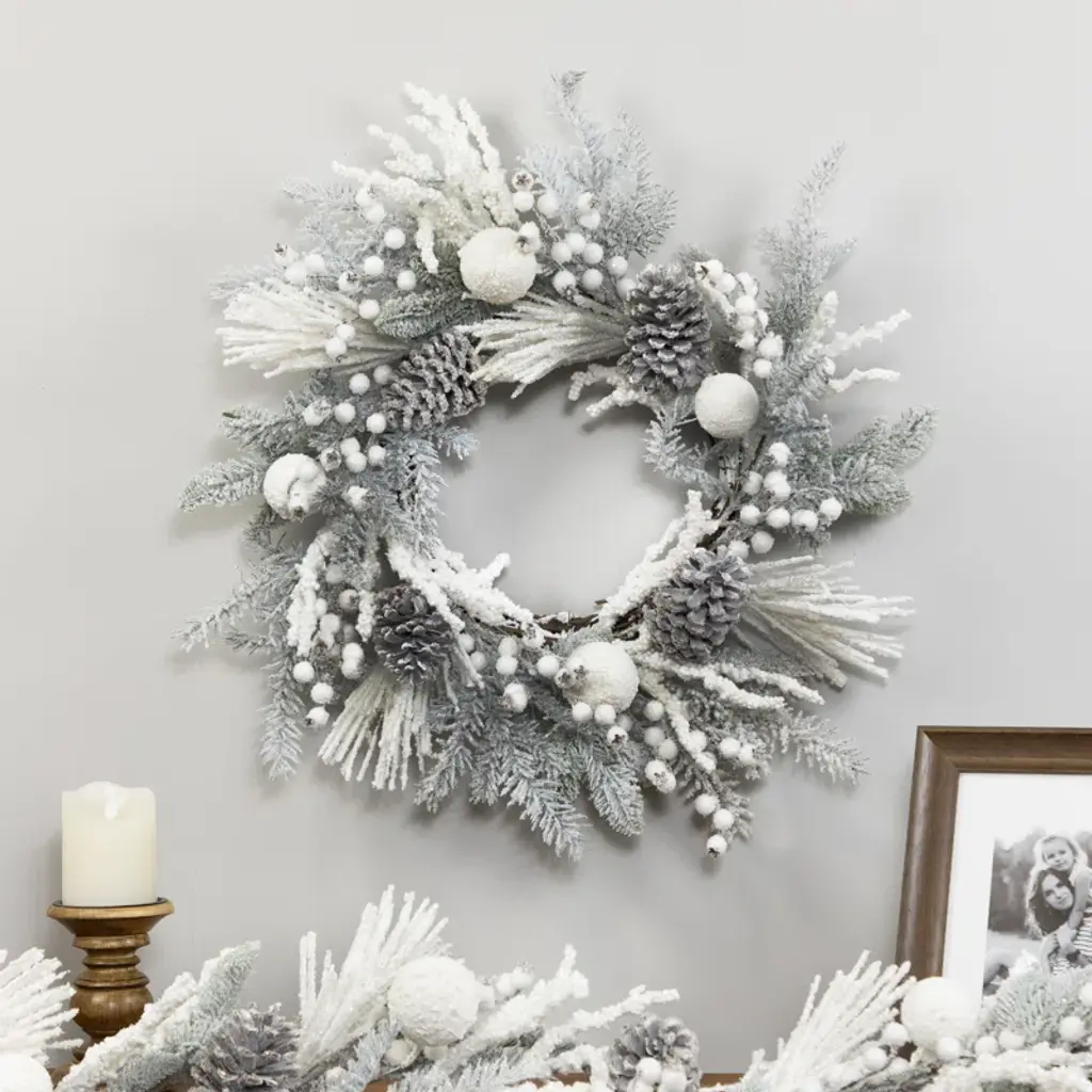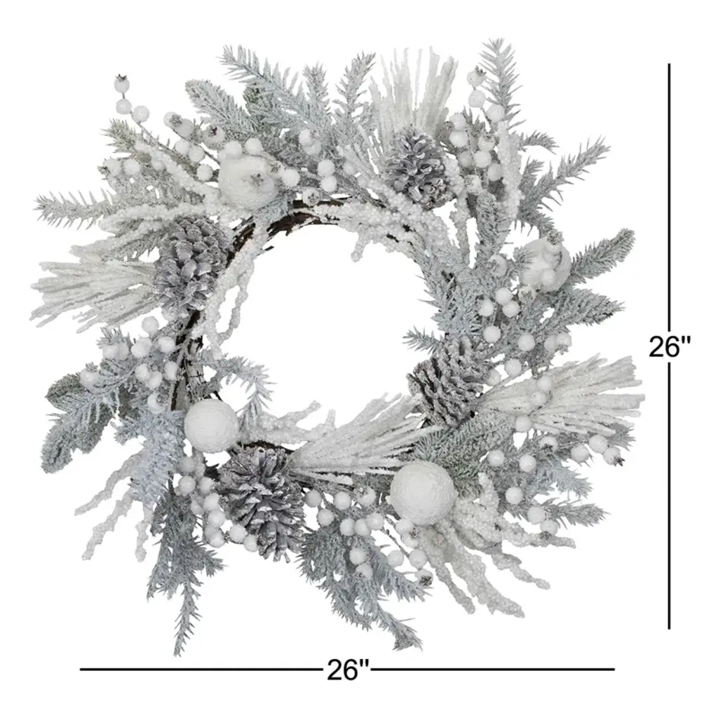 Flocked Berries And Pinecones Artificial Pine Christmas Wreath - 26" - Unlit
