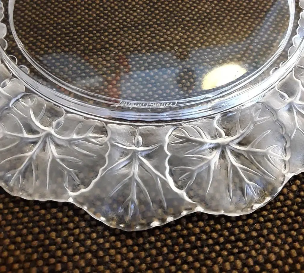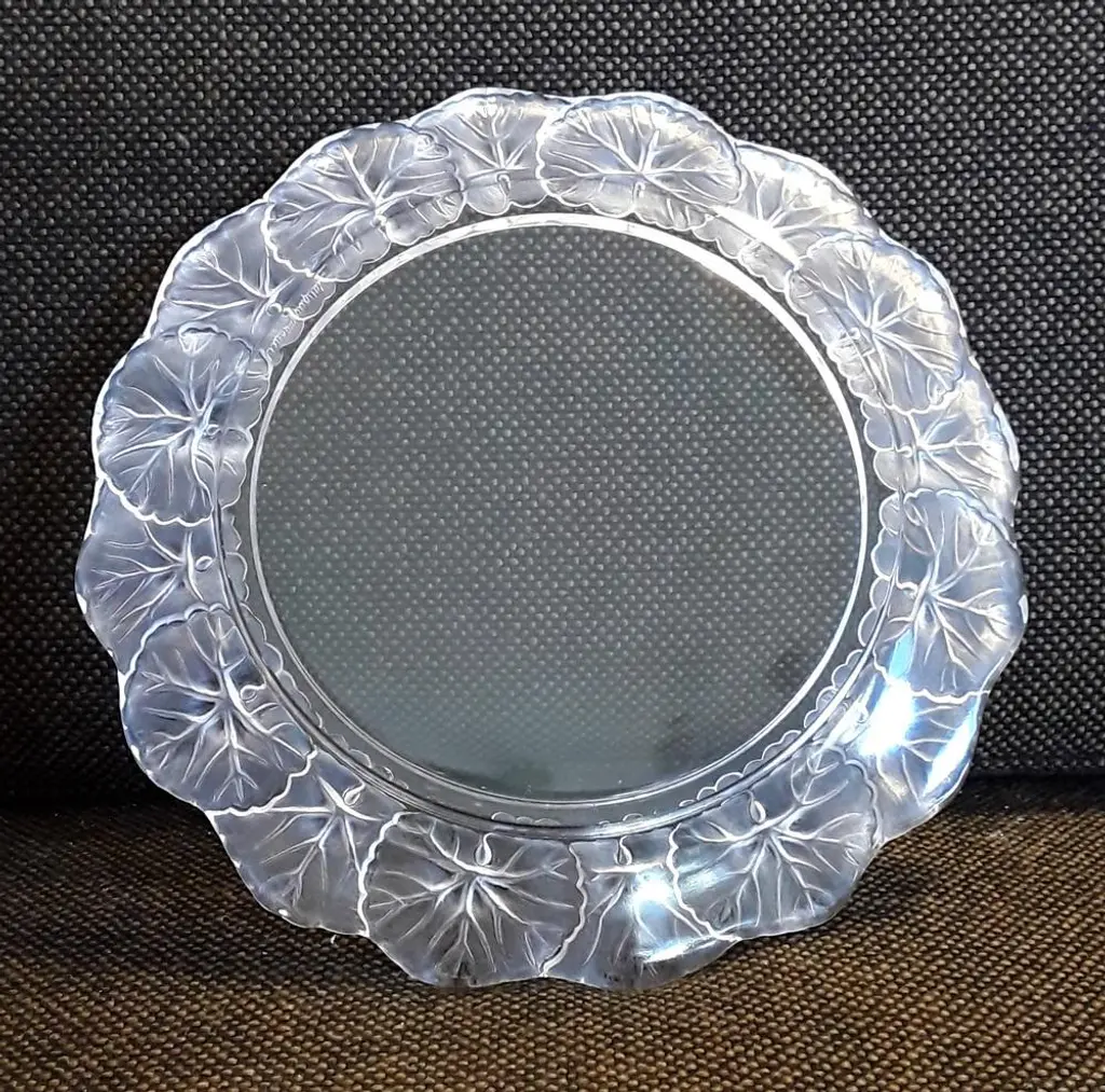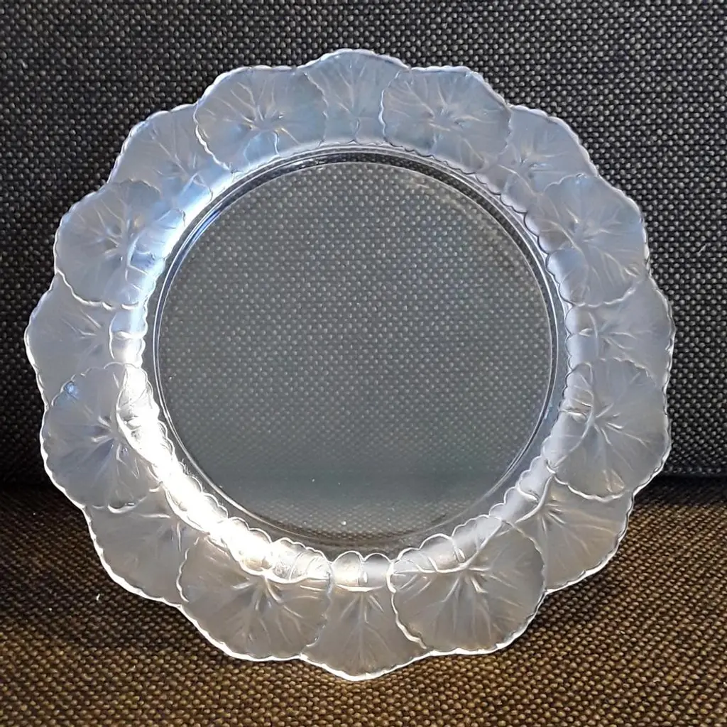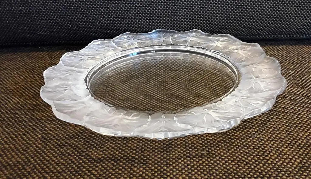 French Crystal Glass Plate With Frosted Flower Wreath And Polished Base From Lalique, 1970s
