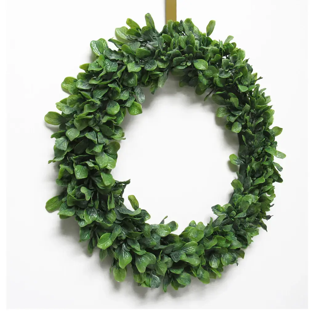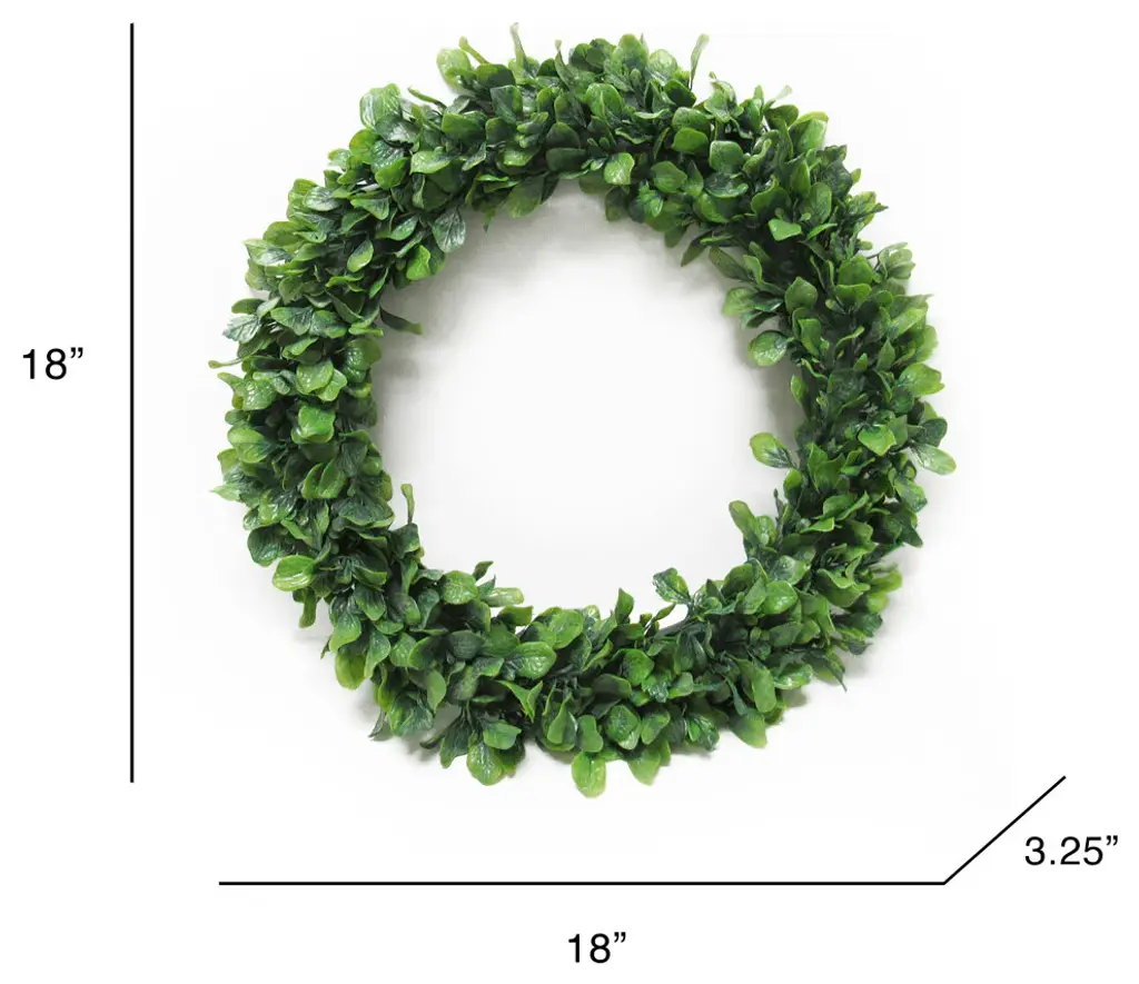This artificial wreath is popular for its frosted color and gorgeous ring of foliage. Understated yet full, great for versatile use. Easy to incorporate into any home, office, or event setting for a touch of greenery. Display as a hanging wreath, tabletop centerpiece, candle ring, and more! Forever fresh, no hassle.Features:• 18" H x 18" W x 3.25" DP• Frosted Lamb''s ear foliage on sturdy plastic ring backing• Hanging or tabletop use• Best for indoor or covered outdoor usage• Product may ship compressed. Primping of branches or leaves may be required to match the image shown.Images represent actual product, but please understand color may vary slightly due to differences in computer monitor color displays, photographic lighting, or image enhancement.