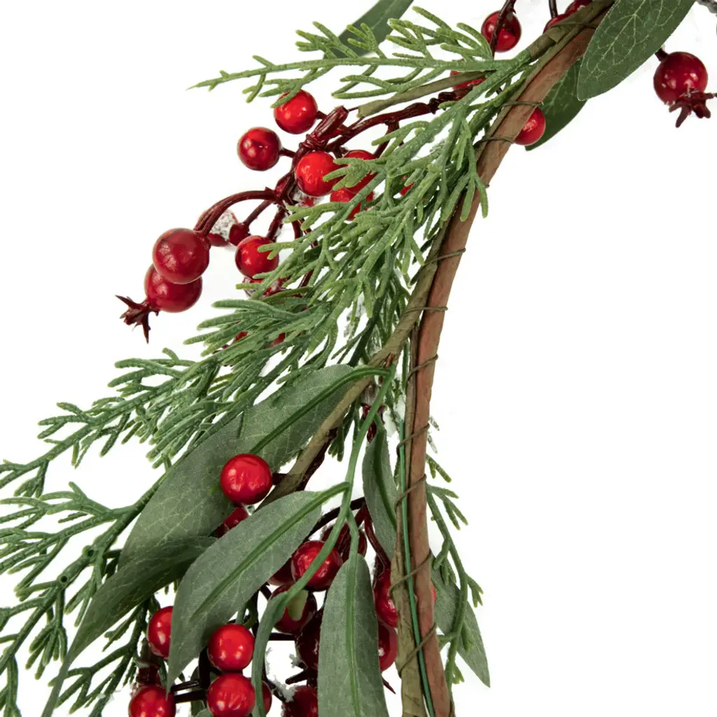 Frosted Red Berries W/ Leaves & Pine Artificial Christmas Wreath 18-Inch Unlit