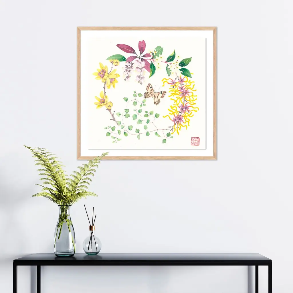 This work from Gabby Malpas brings any wall to life with its vibrant florals and detailed porcelain vessels. Printed on high-quality paper with deckled edges, floated over a mat, and displayed in a simple wood frame, this piece arrives ready to hang. Gabby Malpas creates joyful, intricate watercolor works. Locally grown flowers and fruits picked nearby are rendered with tender warmth, often borrowing from the delicate aesthetics of Chinese ceramics and Southeast Asian batik fabrics. She works on high-quality art paper which she sometimes stitches together to add texture. Gabby trained as a ceramicist in New Zealand and has lived for many years in the UK. She now resides in Sydney, Australia.