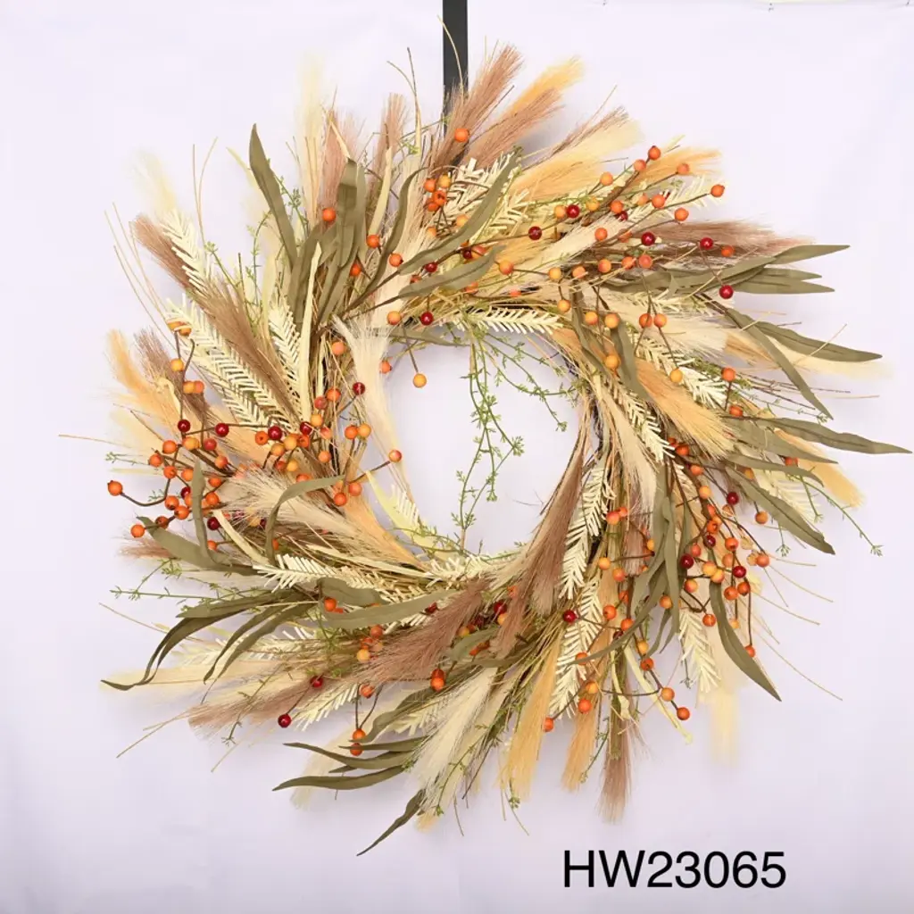 Embrace the beauty and versatility of our Artificial Pampas Grass Front Door Wreath, elevating your autumn ambiance with effortless grace. The lush grass base sets a natural and serene tone, while delicate berry accents add a touch of sophistication. Perfectly versatile, this wreath suits various autumn occasions, be it Thanksgiving, Halloween, or simply embracing the beauty of fall. Crafted with premium artificial materials, it delivers the allure of pampas grass without the upkeep. Hang it on your front door to welcome guests or create a captivating centerpiece for a refined home decor.