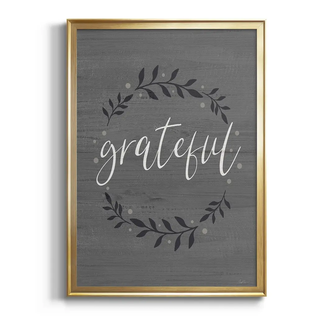 Grateful Wreath Premium Framed Print - Ready to Hang A Premium Framed Print created to last. Framed in distressed wood and available in an array of sizes and colors Featuring a beveled a solid wood stretcher bar, each piece comes ready to hand 4 SIZES AVAILABLE 30.5''X42.5'' - Overall Size 26.5'X36.5'' - Overall Size 22.5''x30.5'' - Overall Size 18.5''x24.5'' - Overall Size Each piece is made to order. Each piece comes with hanging hardware. Made in the USA Ready to Hang