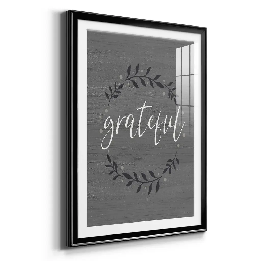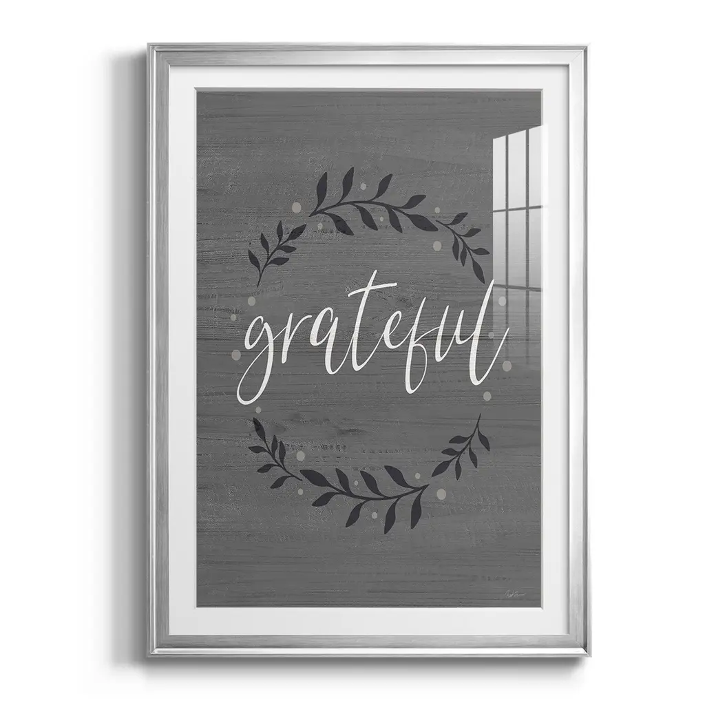 Grateful Wreath Premium Framed Print - Ready to Hang A Premium Framed Print created to last. Framed in distressed wood and available in an array of sizes and colors Featuring a beveled a solid wood stretcher bar, each piece comes ready to hand 4 SIZES AVAILABLE 30.5''X42.5'' - Overall Size 26.5'X36.5'' - Overall Size 22.5''x30.5'' - Overall Size 18.5''x24.5'' - Overall Size Each piece is made to order. Each piece comes with hanging hardware. Made in the USA Ready to Hang Giclee Paper Print Acrylic Glass Beveled Matt Board