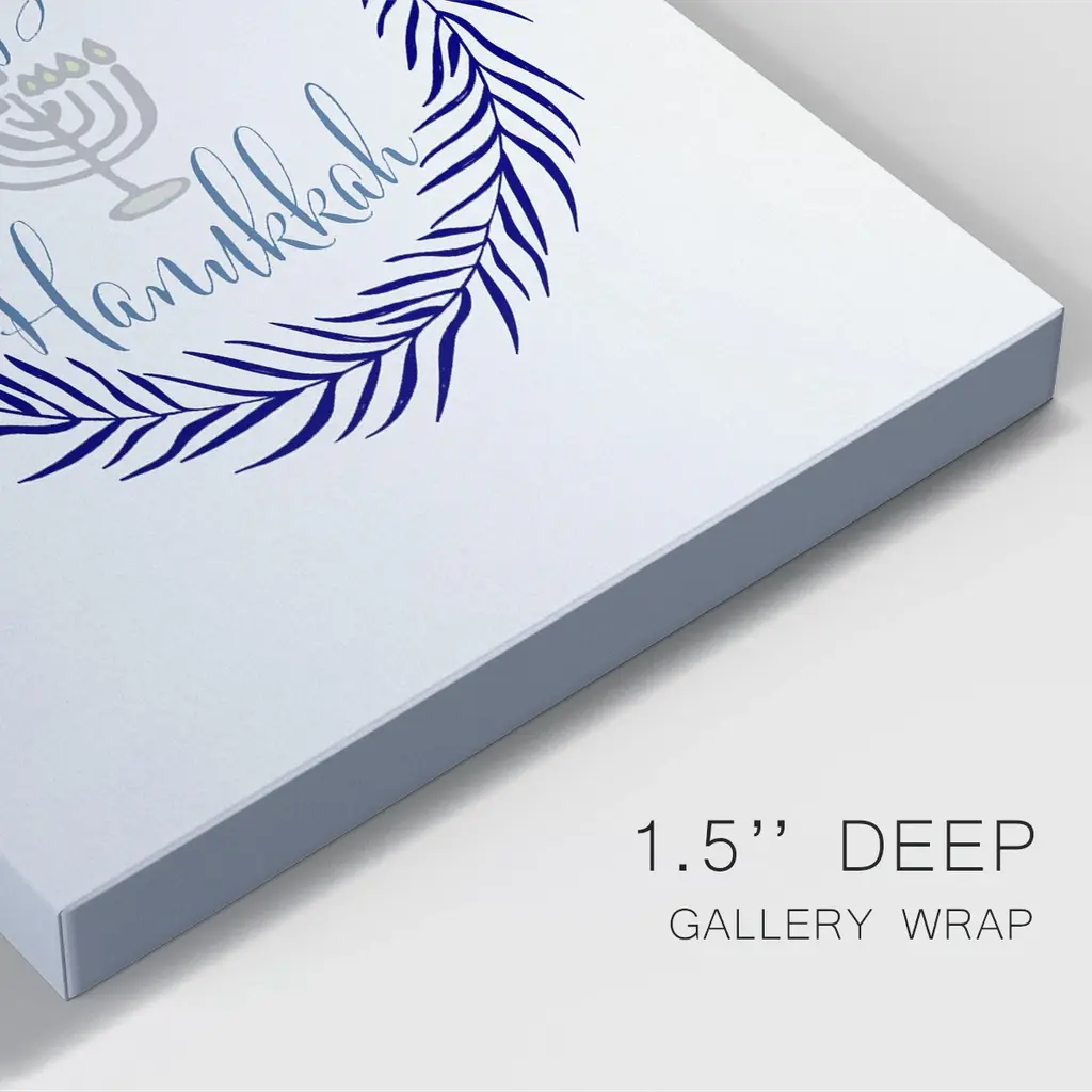 Hanukkah Wreath Premium Gallery Wrapped Canvas - Ready to Hang A premium hand stretched gallery wrapped canvas print created to last. Featuring a beveled a solid wood stretcher bar, each piece comes ready to hand 6 SIZES AVAILABLE 8''X12'' - Overall Size 12''X18'' - Overall Size 18''X27'' - Overall Size 24''x36'' - Overall Size 32''x48'' - Overall Size 40''x60'' - Overall Size Each piece is made to order. Built to Last Each piece comes ready to hang Solid wood stretcher Fade and Water resistant Made domestically