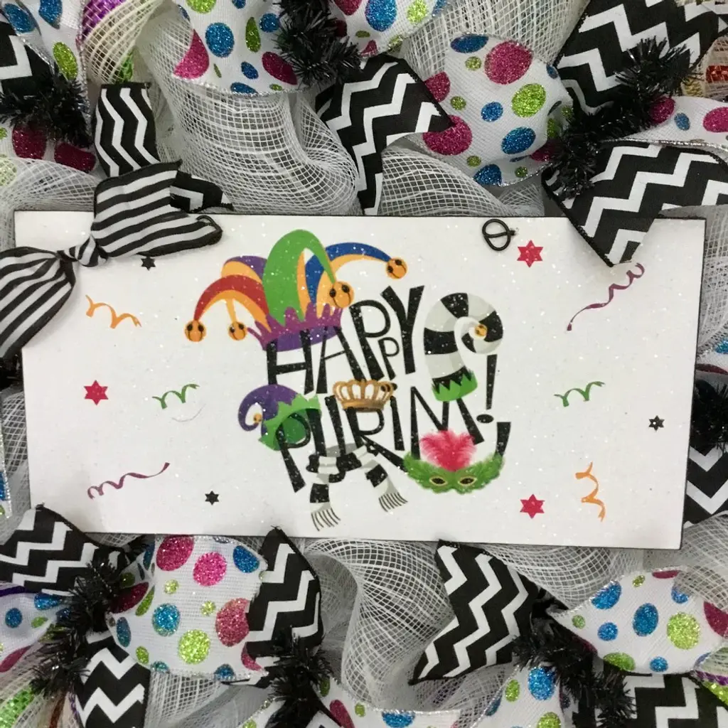 Happy Purim Handmade Deco Mesh Wreath