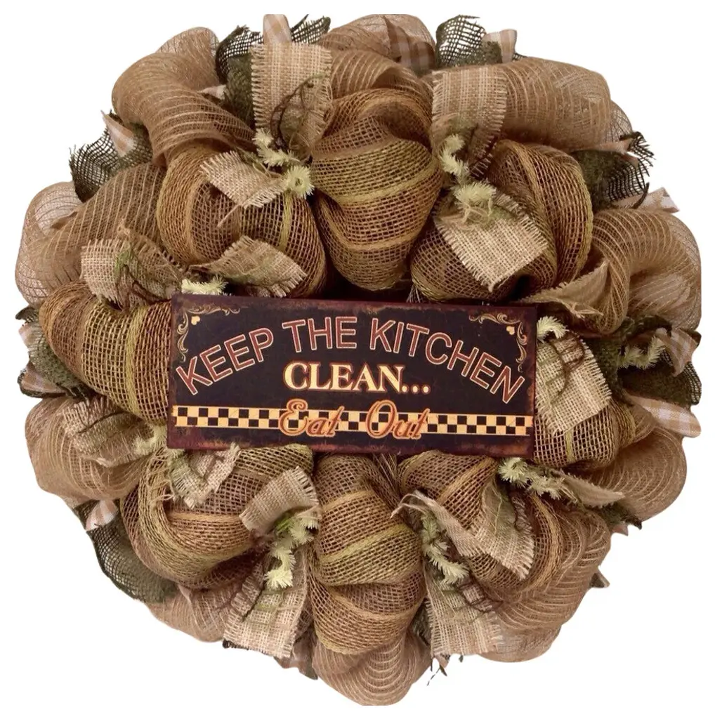 Beautiful Handmade Autumn Baby Wreath. A large aluminum, harvest sign, rests on a bed of creamy deco mesh. The sign is decorated with a white pumpkin. It has a harvest orange border and the wording "œHello Little Pumpkin."� The accent is surrounded by colorful pumpkin ribbons and burlap with lace ribbons. The outer wreath is made of burlap and cream plaid fabric mesh. Natural burlap and cream mesh ribbons and canvas ribbons with large pumpkins surround the outer ring. Perfect for decorating a baby''s room or baby shower. Indoor/Outdoor 24 inch diameter, 6 inch depth.