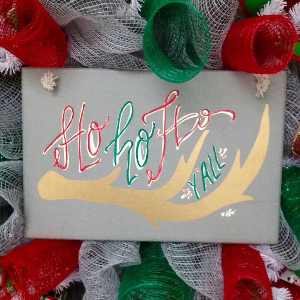 Ho Ho Ho Y'all Christmas Wreath With Reindeer Antlers Handmade Deco Mesh