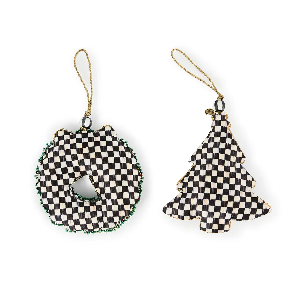 Holiday Beaded Wreath & Tree Ornaments, Set Of 2
