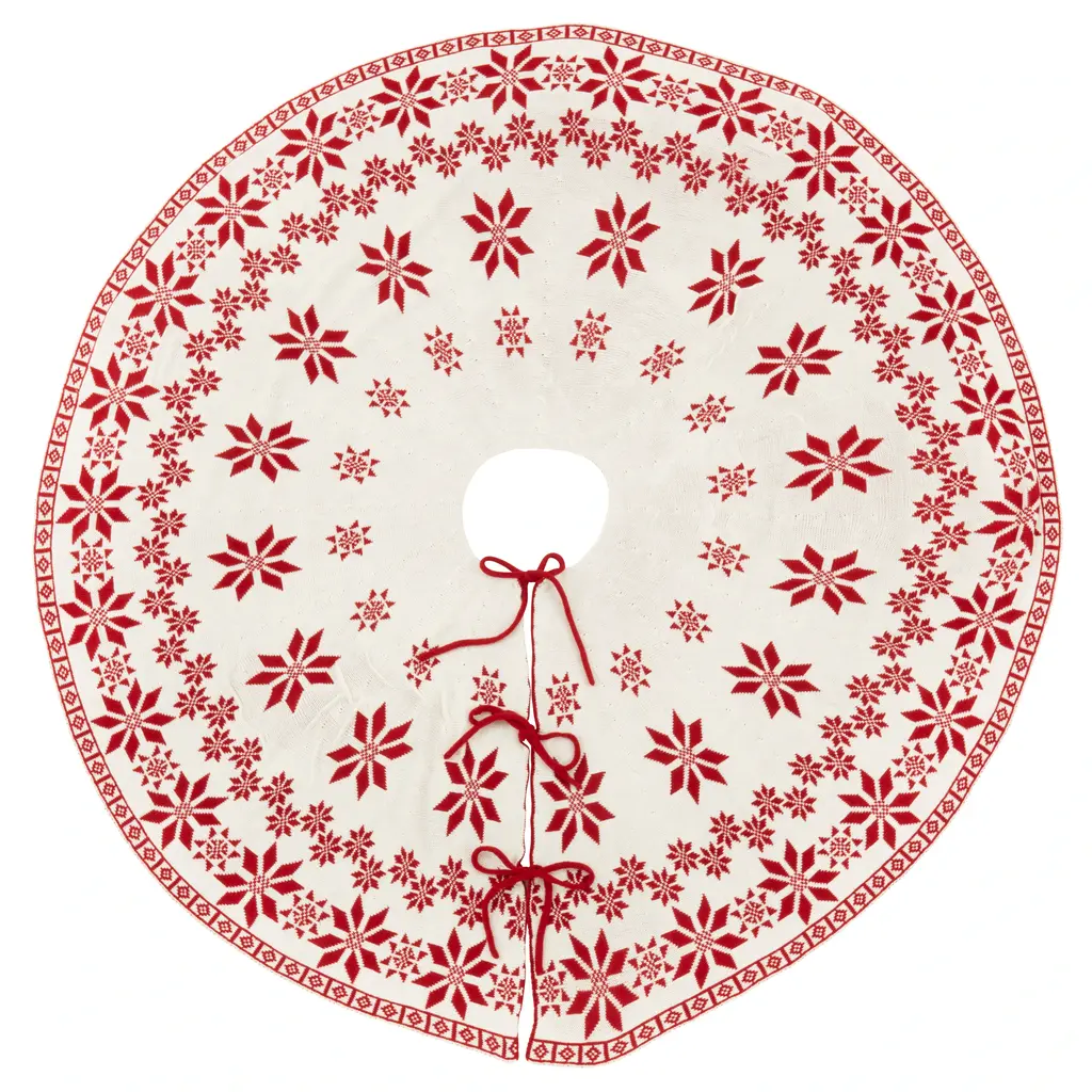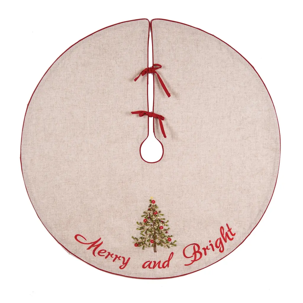 Holly Berry Wreath Ribbon And Pom Pom Embroidered Double Layer Tree Skirt - White - 48 In