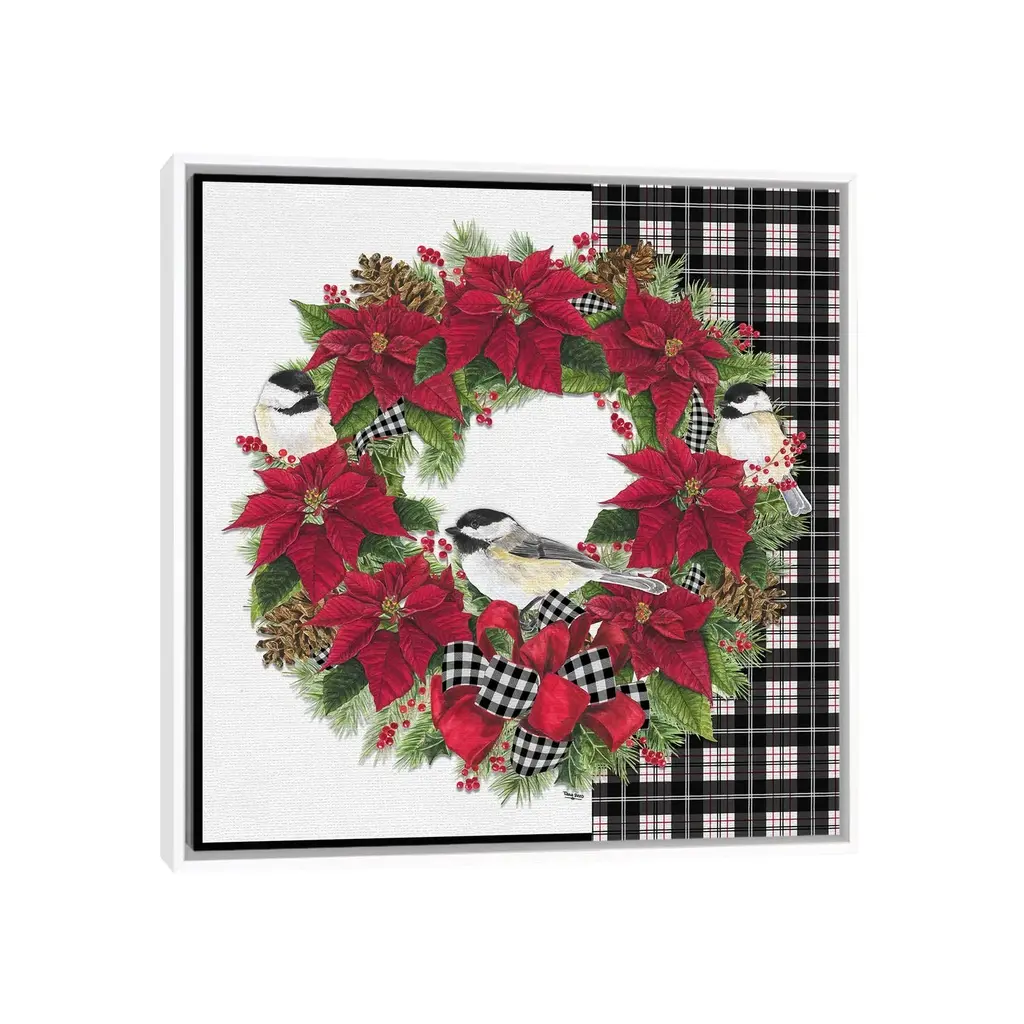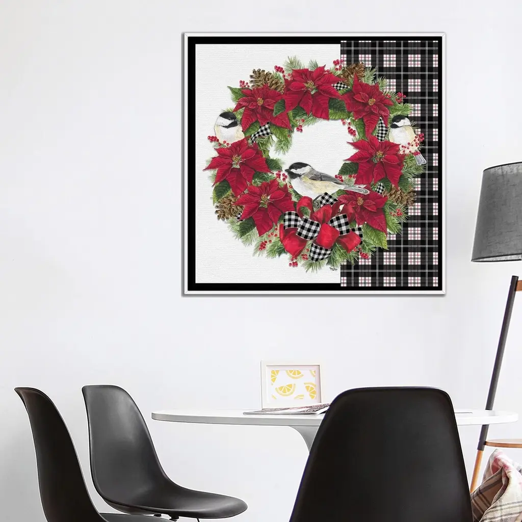 Icanvas "Chickadee Christmas Red V - Wreath" By Tara Reed Framed - Black - 12x12
