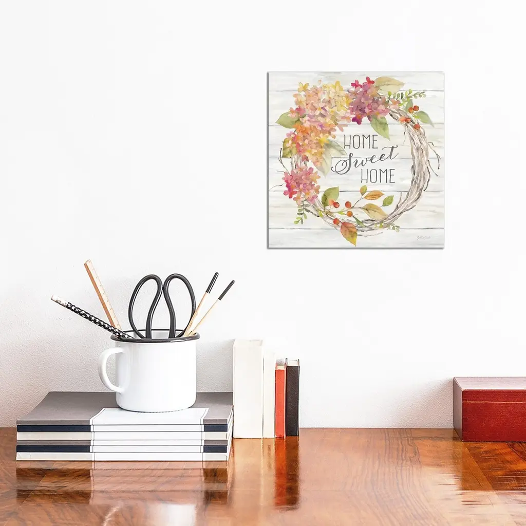 Icanvas "Farmhouse Hydrangea Wreath Spice I Home" By Cynthia Coulter Canvas Print - 26x26x1.5
