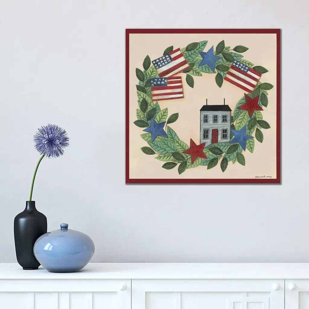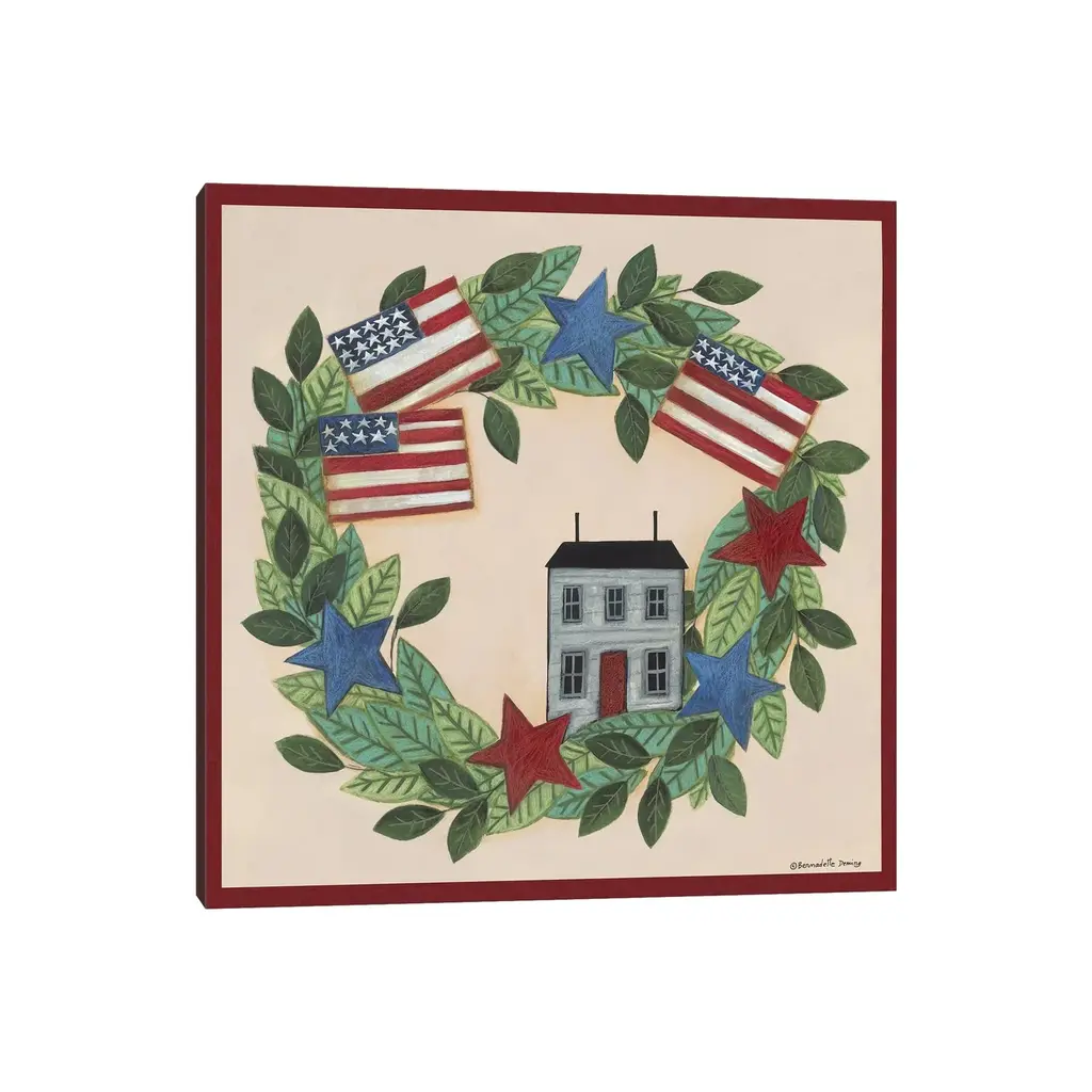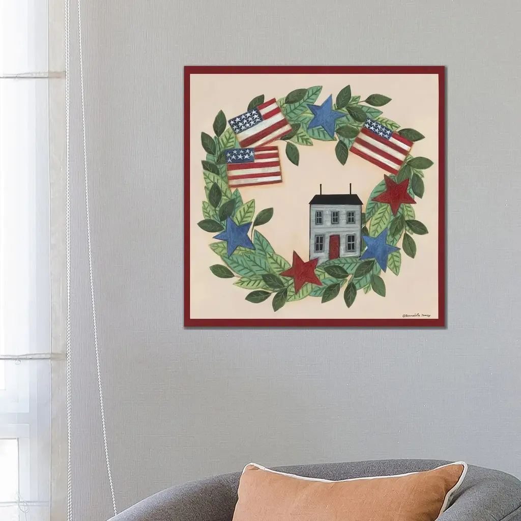 Icanvas "Patriotic Saltbox House Wreath" By Bernadette Deming Canvas Print - 26x26x1.5