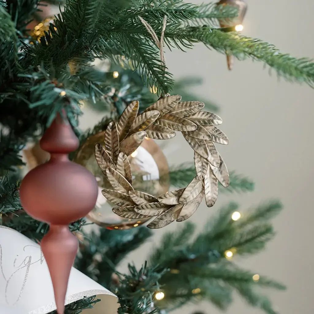 Add a touch of handcrafted elegance to your holiday decorations with our set of 4 handcrafted 5-inch iron wreath ornaments, finished in a rich brass tone, made in India. These ornaments are expertly crafted by skilled artisans, featuring intricate detailing that captures the timeless beauty of a classic wreath design. The brass finish provides a warm, vintage-inspired look that complements various seasonal decor styles, from traditional to modern. Ideal for adorning Christmas trees, wreaths, or garlands, these versatile ornaments add a sophisticated and unique flair to your festive decor. Bring a piece of handcrafted artistry into your home this holiday season with these exquisite iron wreath ornaments.